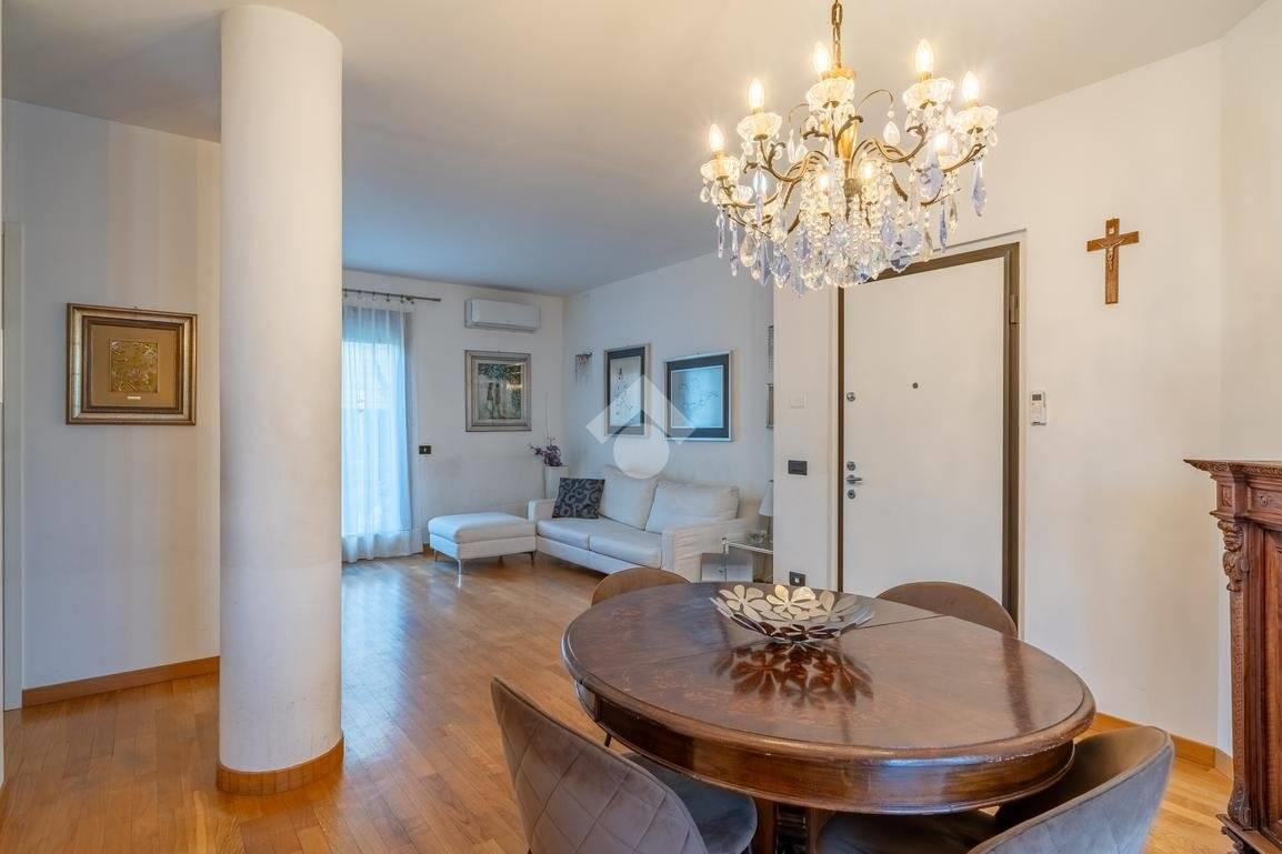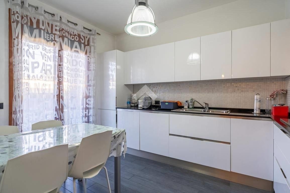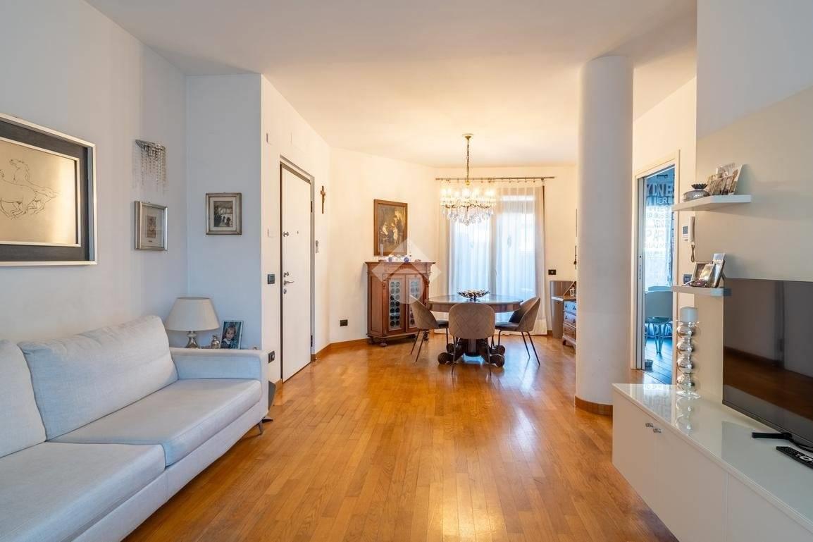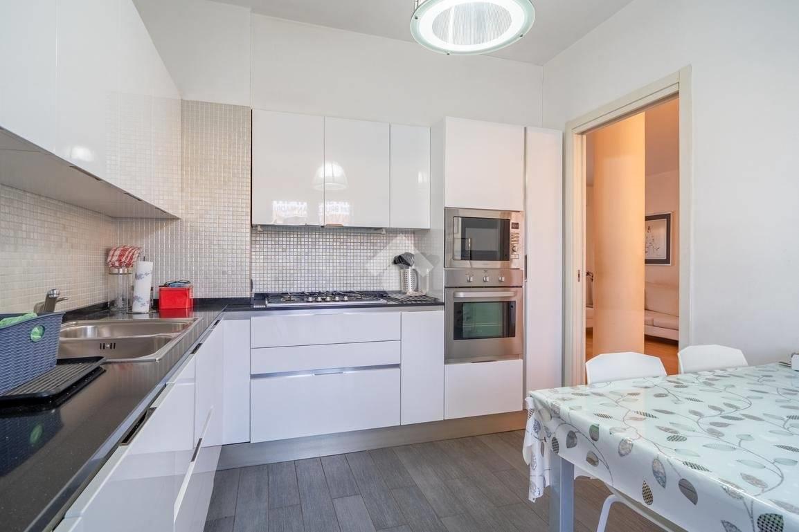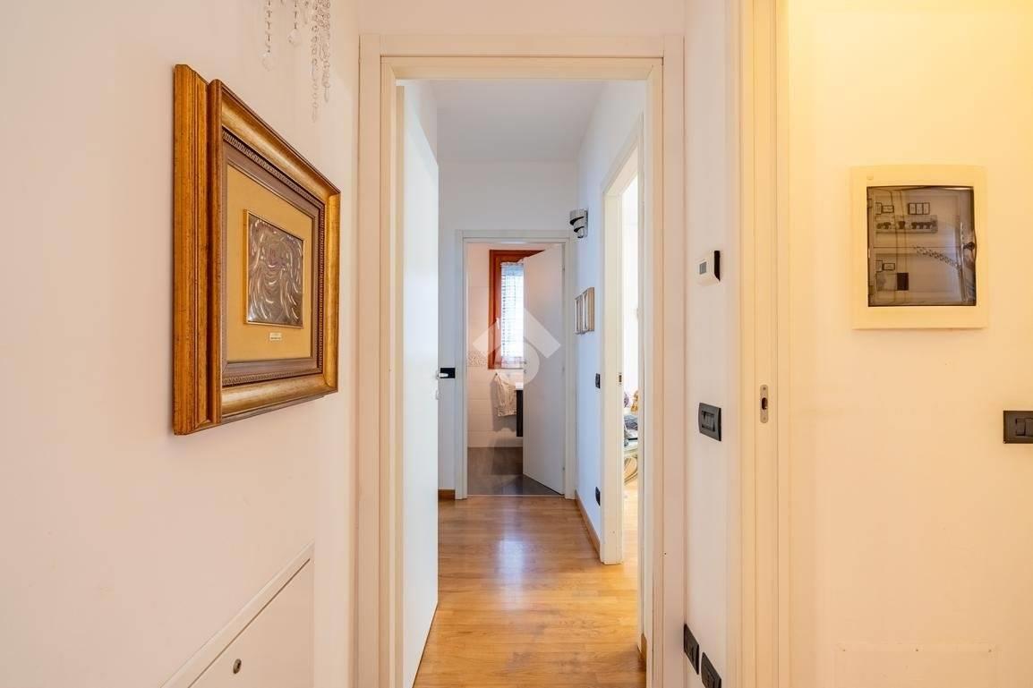 L’immobile è composto da ingresso su luminoso soggiorno suddiviso in zona pranzo e zona living, cucina abitabile, disimpegno, due camere da letto e doppi servizi entrambi finestrati, una soluzione sempre più richiesta per comodità e funzionalità.