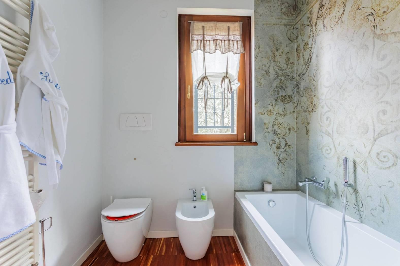 Salendo al piano secondo, trovi una spaziosa camera matrimoniale con cabina armadio, un secondo bagno e una terrazza panoramica che offre una vista incantevole. Tutti gli ambienti sono rifiniti in parquet, creando un'atmosfera calda e raffinata. Dotato di inferiate, zanzariere e allarme, questo appartamento garantisce sicurezza e tranquillità.