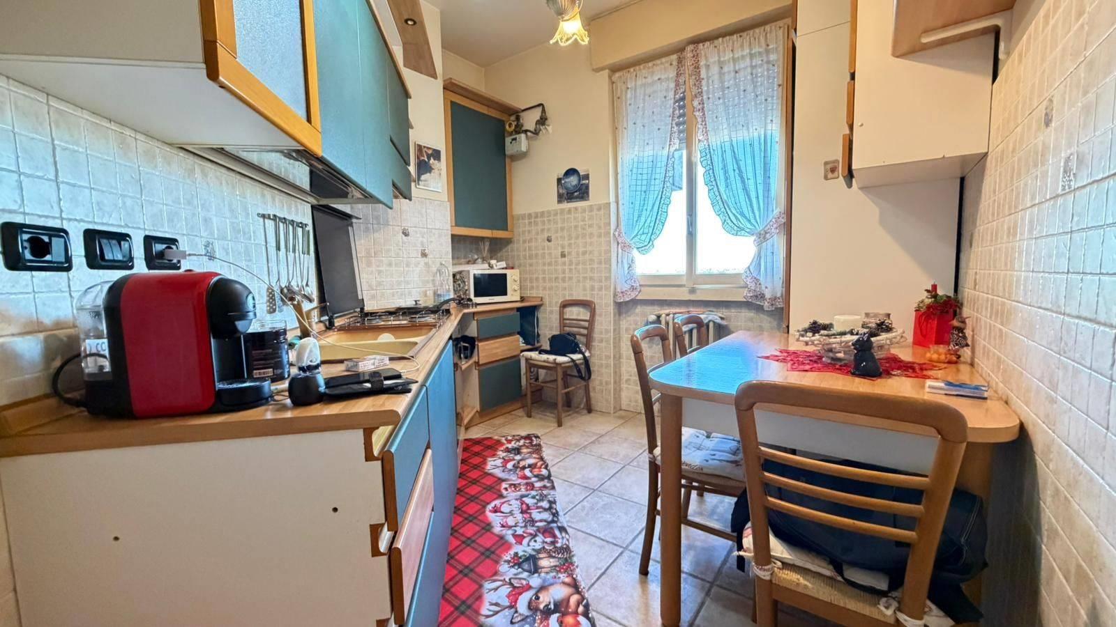 Gli spazi interni sono ampi e ben distribuiti e grazie al piano alto l’appartamento gode di una piacevole vista panoramica. L’immobile è composto da un luminoso soggiorno con balcone, una cucina abitabile, due camere da letto, un bagno e un pratico ripostiglio.
