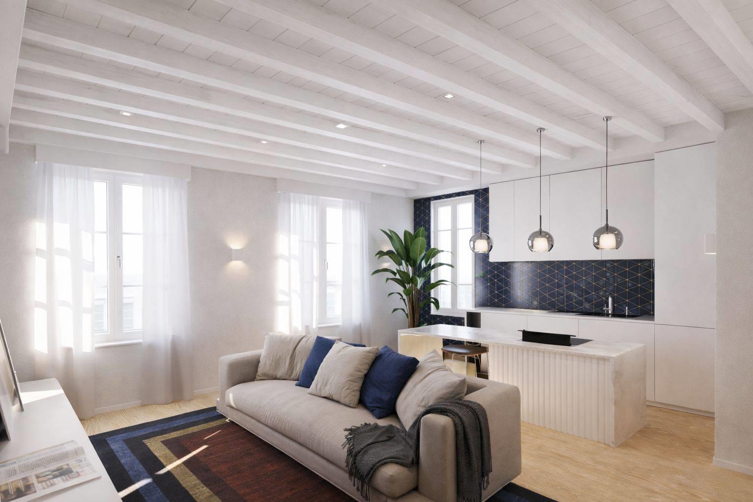 ingresso su zona giorno con cucina a vista, luminoso e ben distribuito