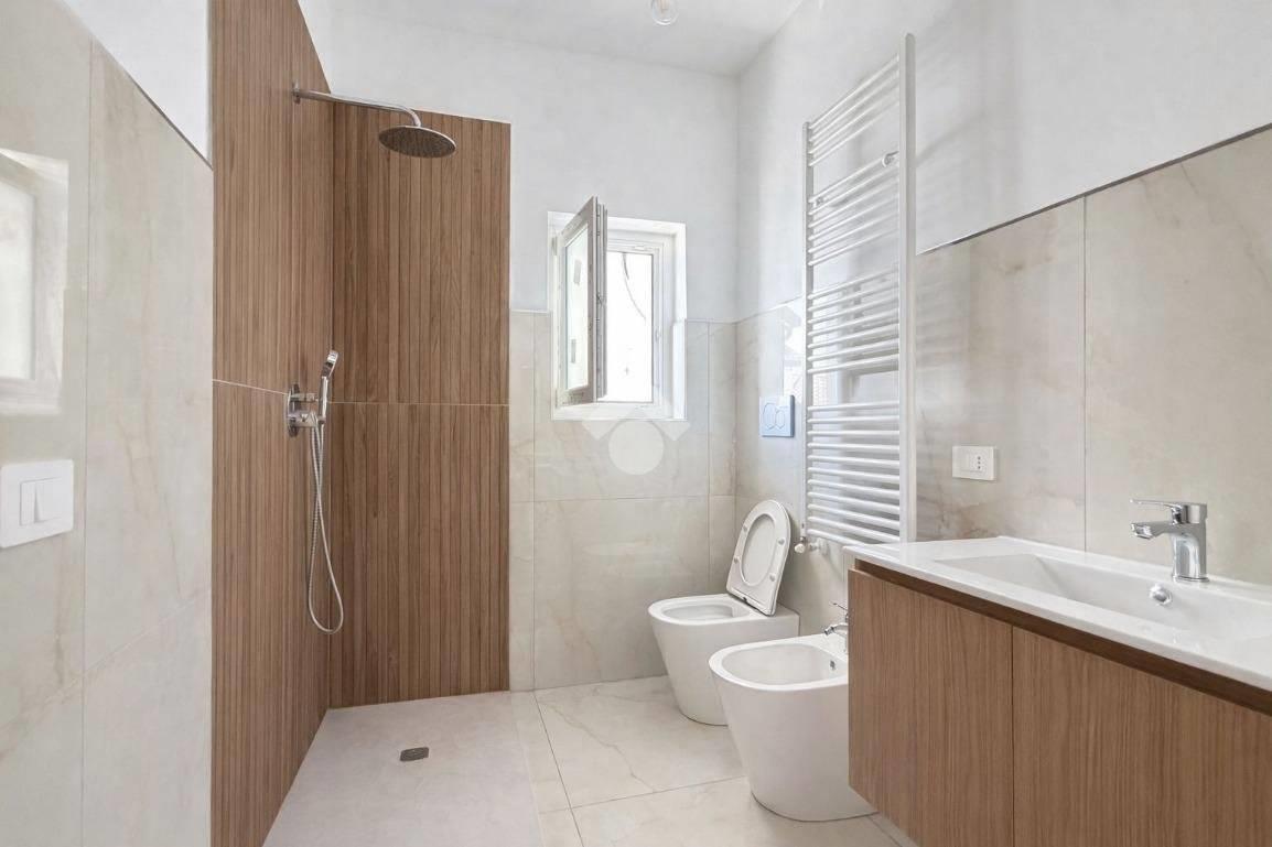 In centro, in contesto di corte molto ben tenuta, proponiamo un grazioso trilocale completamente ristrutturato senza spese, così composto: ingresso, soggiorno con cucina a vista e balcone, un piccolo locale caldaia/lavanderia sul balcone, due camere e doppi servizi. L'immobile verrà completamente rifinito con parquet, tapparelle elettriche e predisposizione di aria condizionata in tutti i locali. Libero subito.