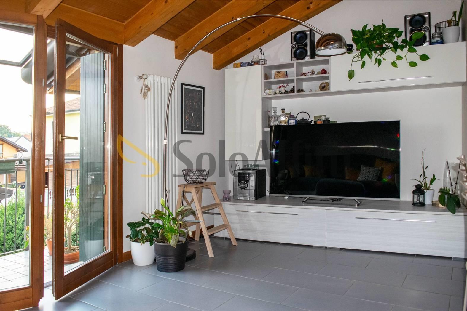 Cabiate: In recente palazzina di poche unità abitative, e comoda con la stazione ferroviaria situata lungo la ferrovia Milano-Asso, posizionato al secondo e ultimo piano senza ascensore, proponiamo ottimo appartamento ARREDATO, composto da soggiorno con cucina a vista, disimpegno, camera matrimoniale, camera/studio, doppi servizi finestrati con vasca e doccia e balcone. Annesso BOX singolo e cantina. LIBERO DAL 1° MAGGIO.