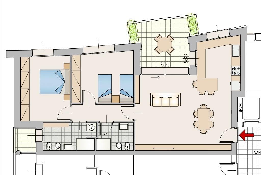 Appartamento 10: trilocale piano primo di 101 mq. doppi servizi con comodo terrazzino