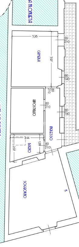La distribuzione interna degli spazi offre due possibilità di realizzazione: nella prima ipotesi è previsto un ampio soggiorno con cucina a vista, bagno, una camera matrimoniale e un ripostiglio di generose dimensioni, perfetto per chi desidera mantenere spazi di servizio capienti e organizzati. Nella seconda ipotesi, invece, il ripostiglio può essere ridisegnato per creare una cameretta, ideale per una giovane famiglia o per chi necessita di uno studio o stanza aggiuntiva, con un ingresso più razionale e ben strutturato.