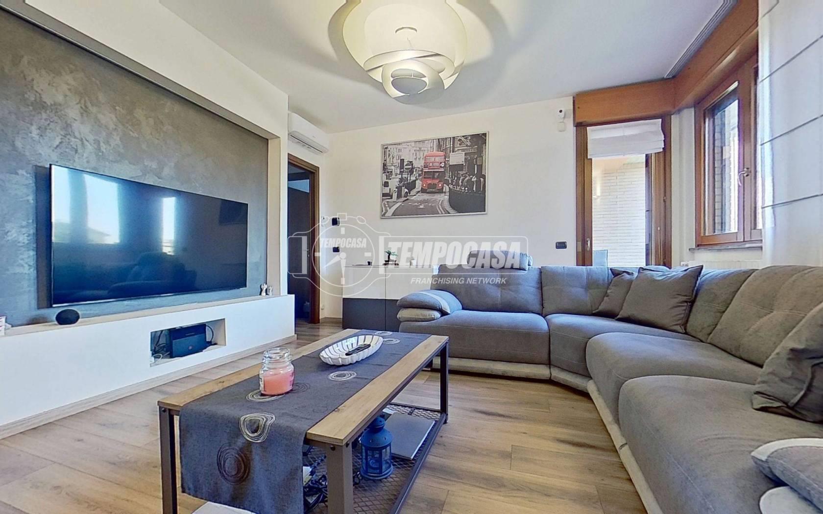 Rif: T0643 - Proponiamo in vendita un elegante appartamento di tre locali di circa 100 mq situato al primo piano di un contesto residenziale moderno e ben curato, edificato nel 2003 e composto da sole 17 famiglie, ideale per chi è alla ricerca di tranquillità e riservatezza senza rinunciare alla comodità dei servizi. L’immobile si presenta in ottime condizioni grazie a una completa ristrutturazione eseguita appena tre anni fa, che ha valorizzato ogni ambiente rendendolo funzionale e accogliente. L’ingresso si apre su un ampio soggiorno luminoso, perfetto per momenti di relax e convivialità, collegato a un comodo terrazzo di circa 15 mq, ideale per pranzi all’aperto o per godersi momenti di tranquillità. La cucina è abitabile, ben organizzata negli spazi e servita da un balcone di 5 mq. La zona notte comprende due camere da letto, entrambe ben illuminate grazie alla tripla esposizione che garantisce luce naturale durante tutto l’arco della giornata, e due bagni entrambi ristrutturati nel 2016 con finiture in gres sia per i rivestimenti che per la pavimentazione, offrendo uno stile moderno e pratico. Completa la disposizione interna un comodo ripostiglio, utile per ottimizzare gli spazi.