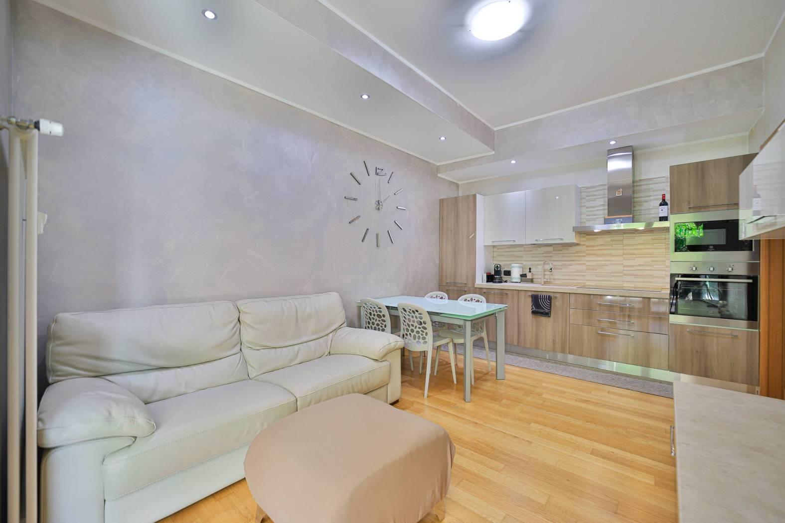 Vivi l'esperienza di un appartamento che incarna qualità e raffinatezza in ogni sua caratteristica. Interamente ristrutturato con materiali di pregio nel 2015, questo appartamento di 78,00 mq si distingue per un'atmosfera accogliente e una cura senza compromessi per i dettagli. L'intera abitazione è pavimentata in parquet di prima scelta, che regala calore e stile a tutti gli ambienti.