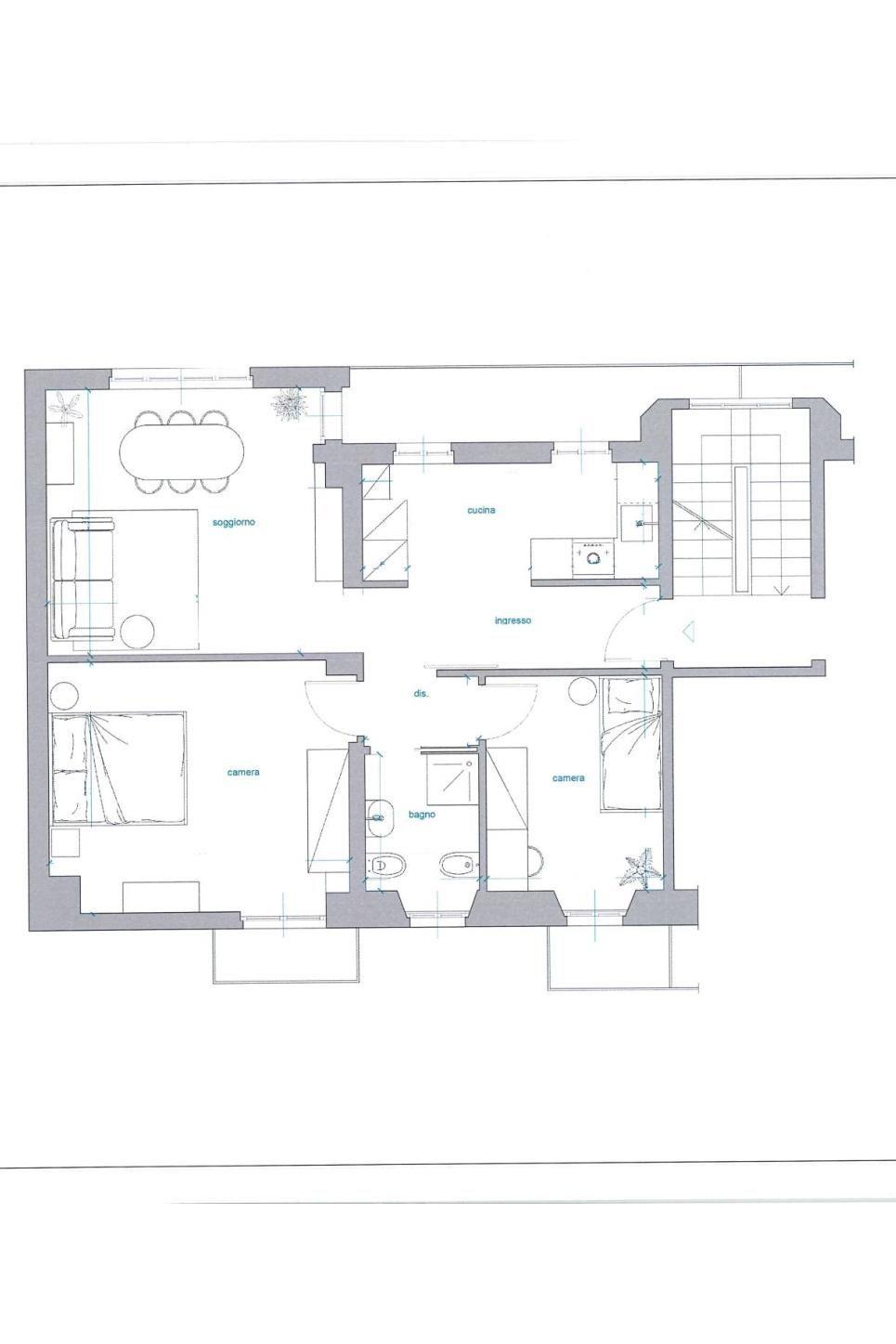 L’appartamento è così composto: ingresso, cucina separata e ampio e luminoso soggiorno, a mezzo porta scorrevole si accede alla zona notte composta da un bagno completamente rifatto, una camera matrimoniale con balcone e una camera/studio anch’essa con sfogo esterno.