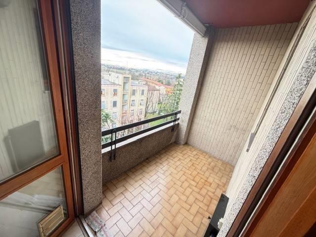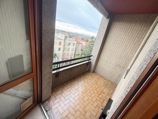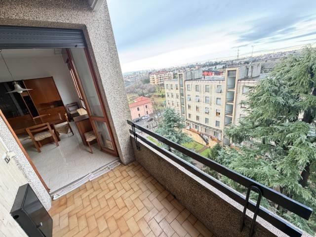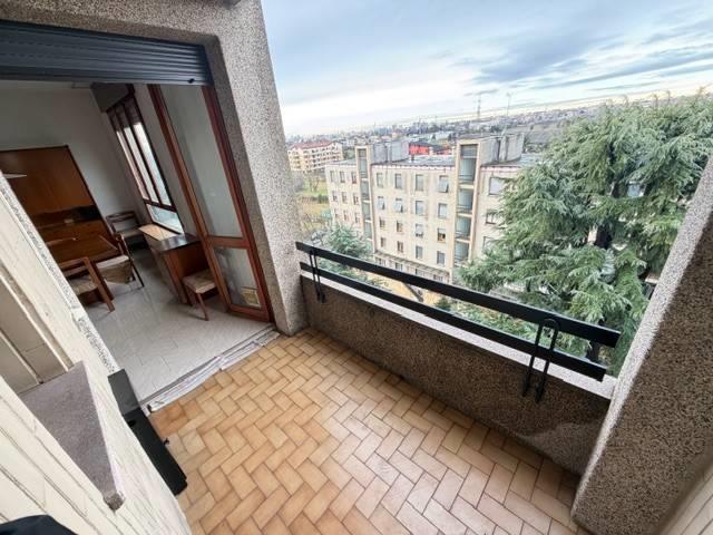 Propone in contesto signorile situato al settimo ed ultimo piano trilocale con ampio balcone loggiato, la soluzione è così composta: ingresso, ampio soggiorno, cucina a vista, camera matrimoniale, cameretta, servizio finestrato, ripostiglio, ampio balcone loggiato con piacevole vista panoramica e cantina. L'immobile si distingue per l'ottima esposizione, ambienti luminosi e spazi armoniosi e funzionali. L'immobile è situato in una zona ben servita offre la comodità di trovare sotto casa fermate dell'autobus, servizi principali come supermercati, farmacie, scuole e negozi, rimanendo inserita in un contesto tranquillo e residenziale. La disponibilità è immediata. Libero subito.