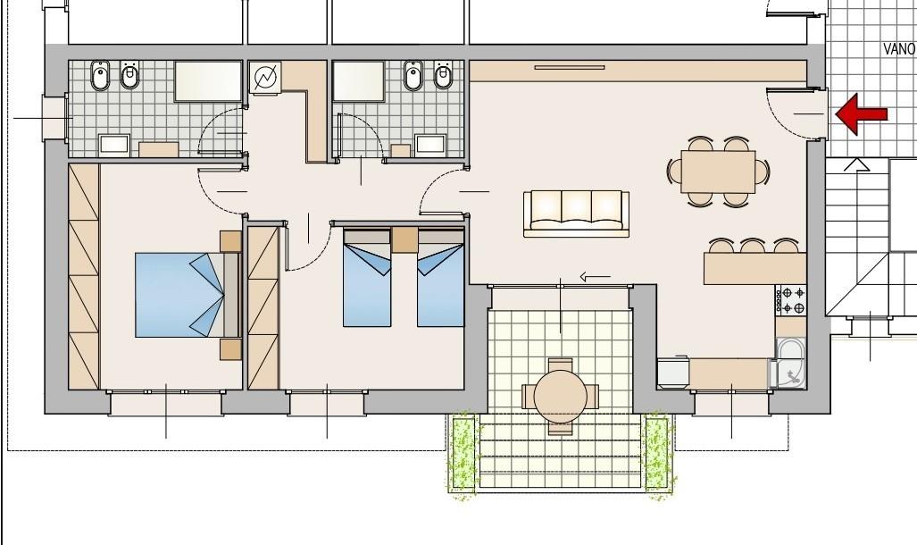 Appartamento 14: trilocale ultimo piano di 96 mq. doppi servizi con comodo terrazzino