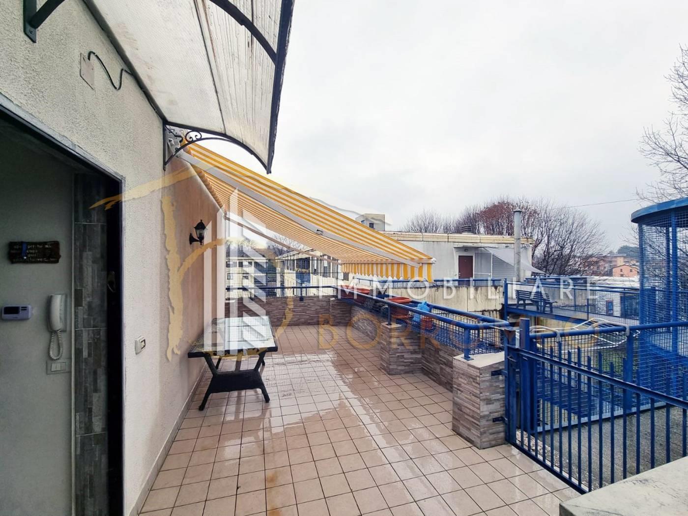 L'unità immobiliare si distingue per la sua generosa metratura e si compone di un accogliente ingresso che conduce a un luminoso soggiorno con angolo cottura. Un pratico disimpegno porta alle due camere da letto e ai due bagni, uno dotato di vasca e l'altro di doccia. All'esterno, un ampio terrazzo di 38 mq, completo di tenda da sole elettrica, offre lo spazio ideale per momenti di relax e convivialità.