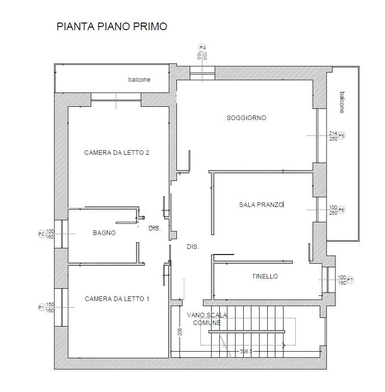 - piano primo di mq.120 con ingresso, cucinotto, sala da pranzo/tinello, soggiorno con ampia balconata di mq.10, disimpegno notte, due ampie camere matrimoniali delle quali una dotata di balcone, bagno con vasca e doccia.