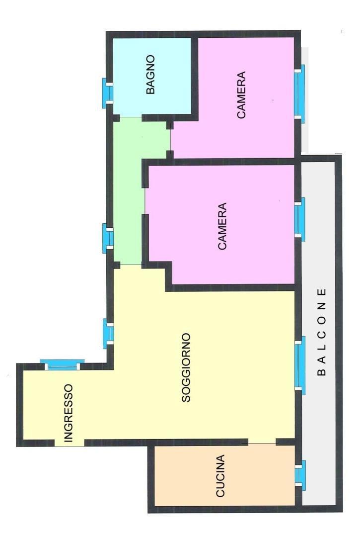 Ampio locale ingresso, soggiorno, cucinotto, 2 camere, bagno.