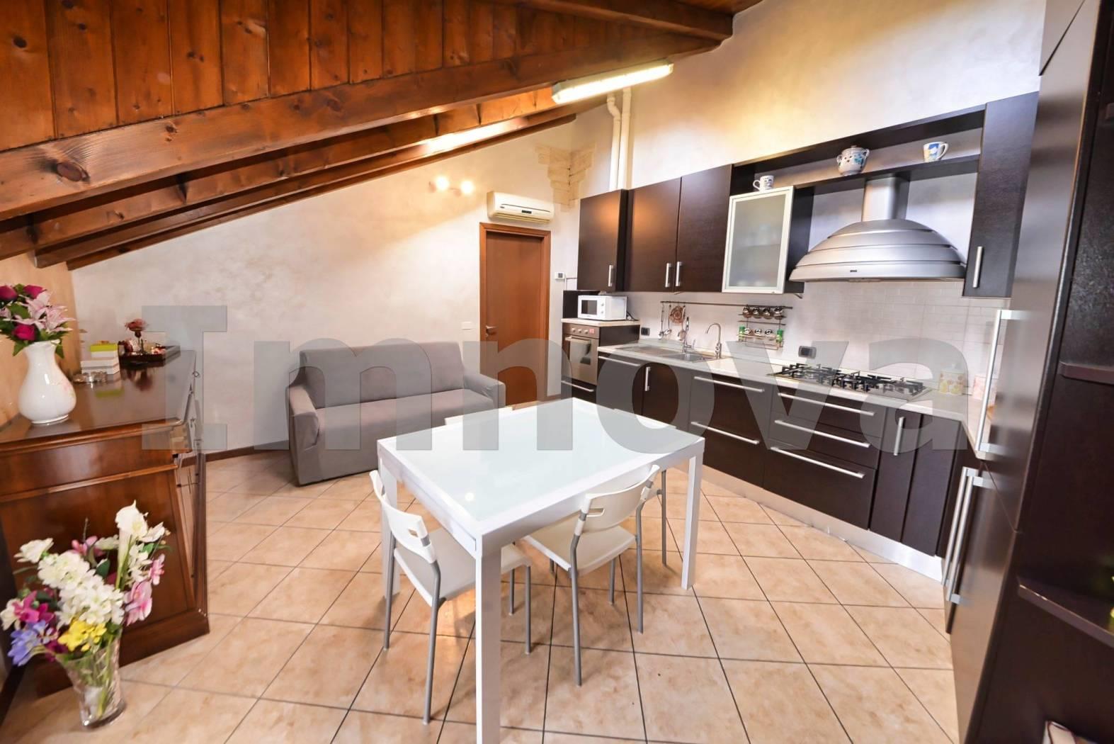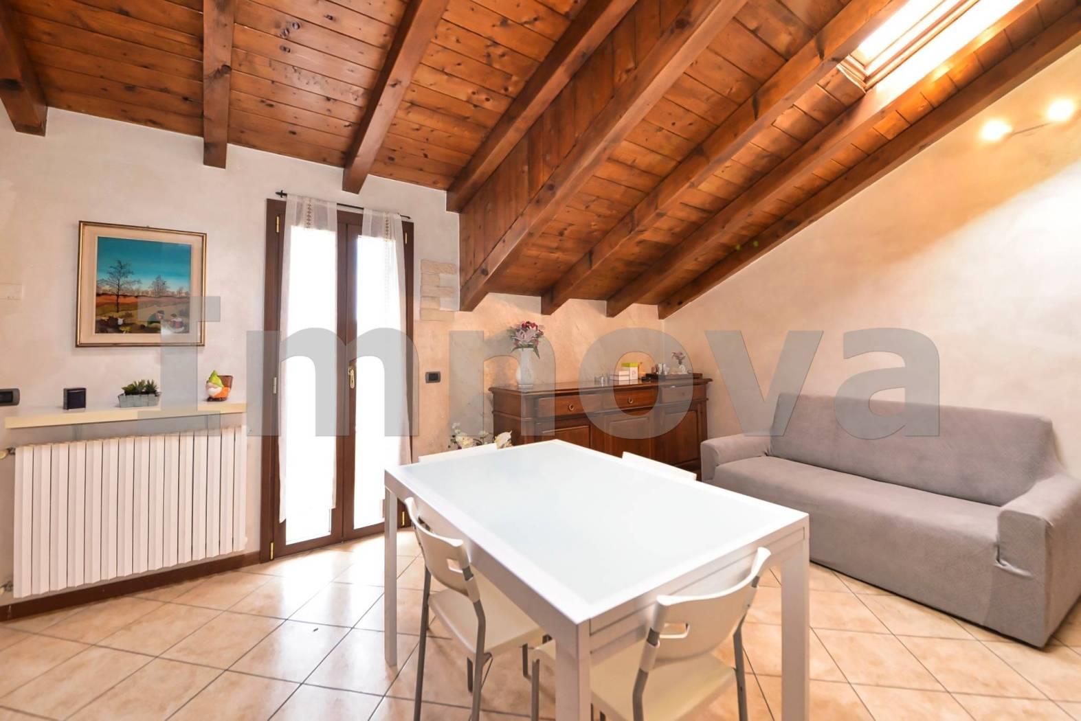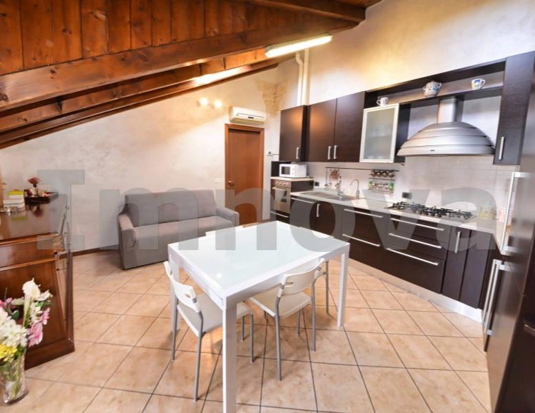 L' appartamento si trova al terzo piano, raggiungibile comodamente con ascensore ed è composto da soggiorno con angolo cottura, disimpegno che conduce alla camera da letto e al bagno con doccia. La balconata collega la zona giorno alla zona notte. Le travi a vista rendono gli ambienti caldi e accoglienti, ottime le finiture: portoncino blindato come primo accesso, infissi recenti con doppio vetro, riscaldamento autonomo con caldaia nuova a condensazione, pavimentazioni in monocottura di prima scelta e aria condizionata.