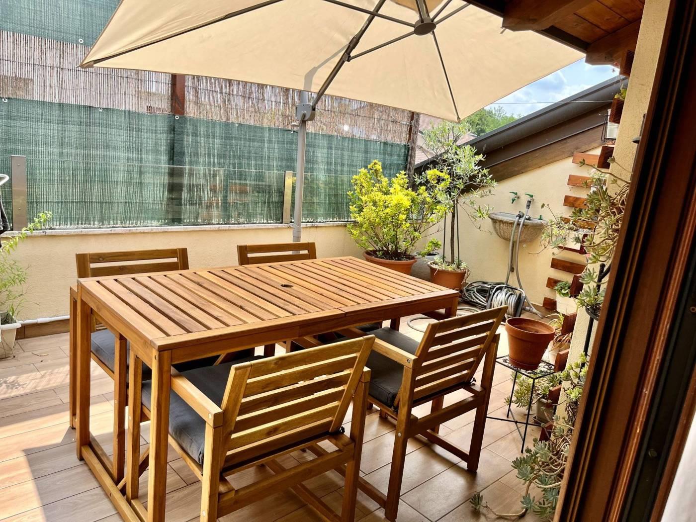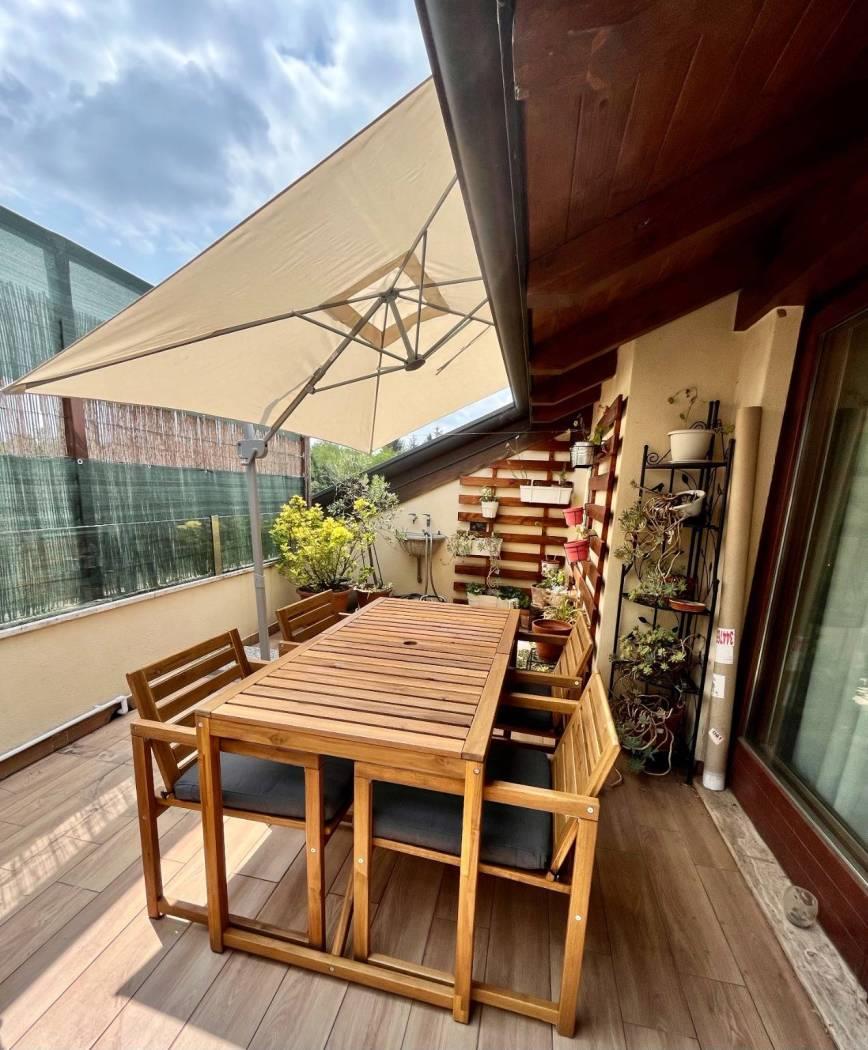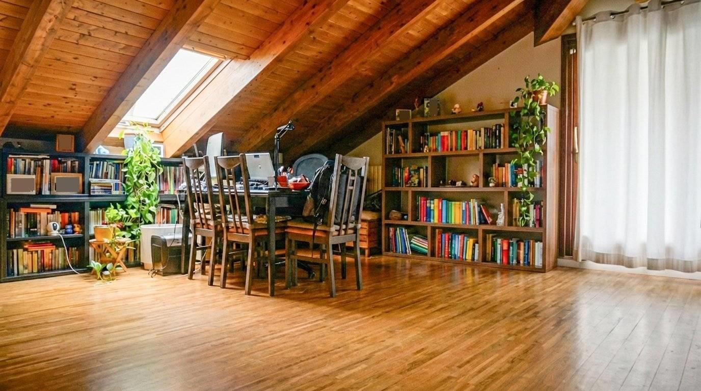 Il piano mansardato, di circa 90 mq, è un suggestivo open space con travi a vista, completo di servizio e terrazzo di 15 mq con esposizione est-sud, ideale per momenti di relax all’aperto.