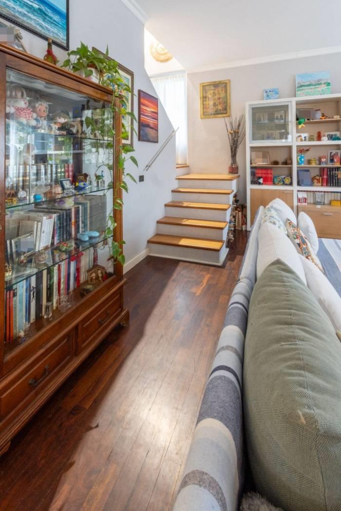 L’appartamento, libero su quattro lati, si sviluppa su due livelli e gode di ottima luminosità e privacy. Il piano primo di mq. 126 con un altezza dei locali di m.3, accoglie un ampio soggiorno, cucina abitabile a vista con zona pranzo, due spaziose camere da letto, un bagno finestrato, il ripostiglio, un balcone ed un terrazzino di circa 9 mq.
