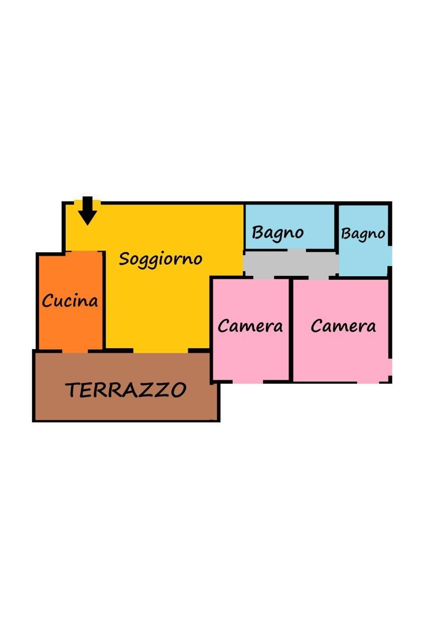 Il soggiorno può tranquillamente ospitare la zona pranzo con comodo tavolo 4 posti e l'area living con divano. La cucina è abitabile. Gli ambienti sono serviti da porta finestra per accedere al terrazzo .