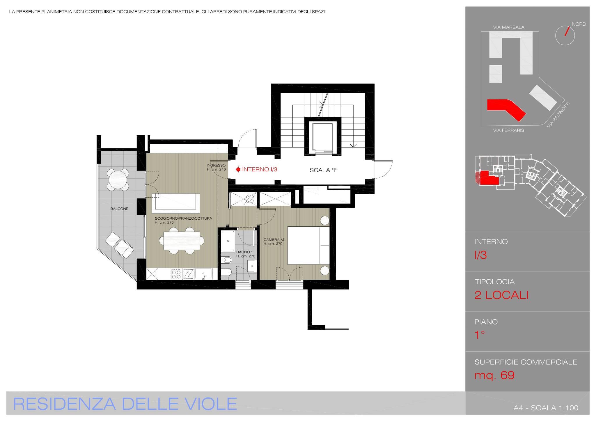 La Residenza Le Viole è l’ultima e più moderna realizzazione che completa il prestigioso Complesso Residenziale dei Fiori. Situata in una posizione strategica, tra Via Marsala e Via Pacinotti, la residenza gode di una vicinanza invidiabile al centro città, alla stazione ferroviaria e ai principali collegamenti stradali, offrendo il perfetto equilibrio tra comodità e tranquillità. L’edificio si sviluppa su otto piani fuori terra, con un ulteriore piano interrato dedicato alle autorimesse e ospita 49 unità abitative progettate per soddisfare ogni esigenza: dai bilocali fino agli attici quadrilocali con soppalco, pensati per chi cerca spazi ampi, luminosi e di pregio. Ogni appartamento, che viene consegnato completamente imbiancato, è stato studiato per garantire il massimo comfort abitativo e propone finiture di alta qualità: pavimenti in parquet prefinito in rovere o gres porcellanato, porte interne con maniglie in alluminio e portoncini blindati classe 4 ad alte prestazioni termiche e acustiche. La tecnologia è protagonista: il sistema centralizzato di riscaldamento e raffrescamento con gestione autonoma garantisce efficienza e risparmio, grazie anche al riscaldamento a pavimento e ai split idronici per la climatizzazione. Ogni unità è dotata di ventilazione meccanica controllata con recupero di calore, mentre l’impianto elettrico Living Light Bticino è predisposto per la domotica di livello 1 con videocitofono a colori e modulo gateway. È inoltre prevista la predisposizione per impianto d’allarme volumetrico e perimetrale. Gli spazi esterni non sono da meno: balconi e logge con parapetti in vetro, pavimentazioni di tipo galleggiante ad effetto pietra e presa d’acqua dedicata; giardini privati con irrigazione automatica, prato seminato e siepi divisorie, perfetti per vivere all’aria aperta in un contesto riservato. Le autorimesse, infine, sono dotate di illuminazione a LED temporizzata, presa dedicata per la ricarica di auto elettriche e basculanti in lamiera zincata. Il tutto in un edificio di classe energetica A4, con pannelli fotovoltaici e solare termico per la produzione di energia e acqua calda, serramenti in alluminio a taglio termico e frangisole motorizzati, a garanzia di un comfort sostenibile e di lunga durata.