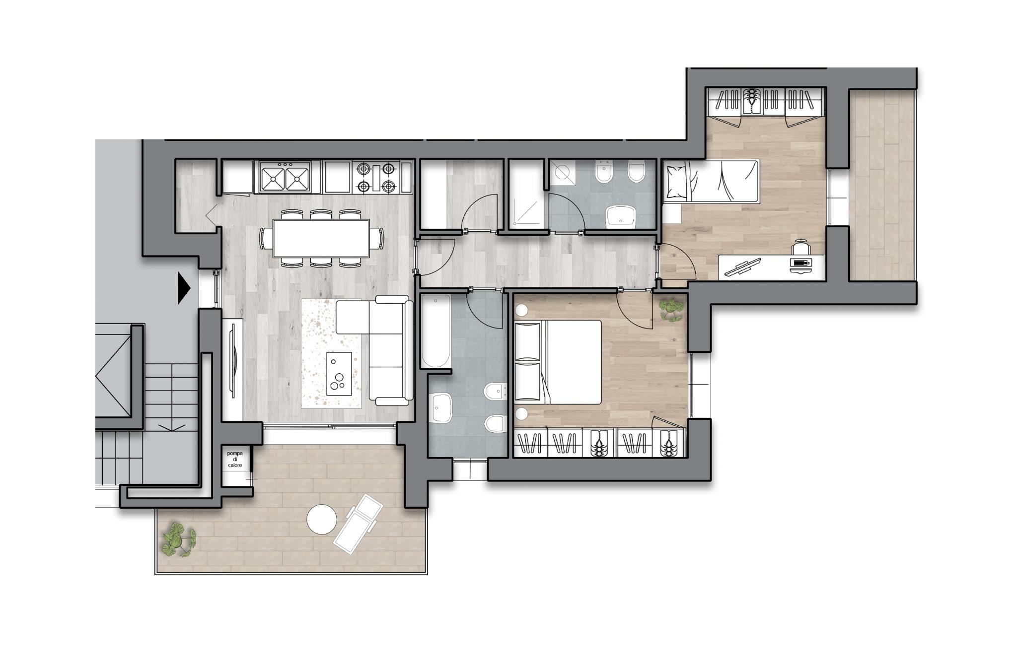 • Impianto di riscaldamento a pavimento e produzione di acqua calda sanitaria con pompa di calore