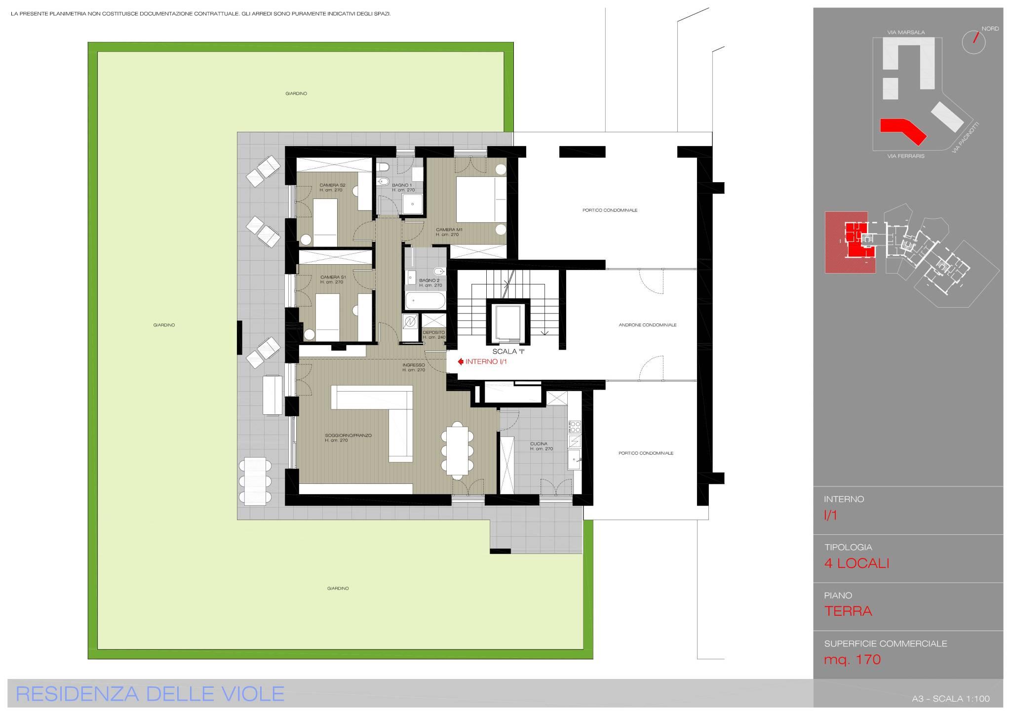 La Residenza Le Viole è l’ultima e più moderna realizzazione che completa il prestigioso Complesso Residenziale dei Fiori. Situata in una posizione strategica, tra Via Marsala e Via Pacinotti, la residenza gode di una vicinanza invidiabile al centro città, alla stazione ferroviaria e ai principali collegamenti stradali, offrendo il perfetto equilibrio tra comodità e tranquillità. L’edificio si sviluppa su otto piani fuori terra, con un ulteriore piano interrato dedicato alle autorimesse e ospita 47 unità abitative progettate per soddisfare ogni esigenza: dai bilocali fino agli attici quadrilocali con soppalco, pensati per chi cerca spazi ampi, luminosi e di pregio. Ogni appartamento, che viene consegnato completamente imbiancato, è stato studiato per garantire il massimo comfort abitativo e propone finiture di alta qualità: pavimenti in parquet prefinito in rovere o gres porcellanato, porte interne con maniglie in alluminio e portoncini blindati classe 4 ad alte prestazioni termiche e acustiche. La tecnologia è protagonista: il sistema centralizzato di riscaldamento e raffrescamento con gestione autonoma garantisce efficienza e risparmio, grazie anche al riscaldamento a pavimento e ai split idronici per la climatizzazione. Ogni unità è dotata di ventilazione meccanica controllata con recupero di calore, mentre l’impianto elettrico Living Light Bticino è predisposto per la domotica di livello 1 con videocitofono a colori e modulo gateway. È inoltre prevista la predisposizione per impianto d’allarme volumetrico e perimetrale. Gli spazi esterni non sono da meno: balconi e logge con parapetti in vetro, pavimentazioni di tipo galleggiante ad effetto pietra e presa d’acqua dedicata; giardini privati con irrigazione automatica, prato seminato e siepi divisorie, perfetti per vivere all’aria aperta in un contesto riservato. Le autorimesse, infine, sono dotate di illuminazione a LED temporizzata, presa dedicata per la ricarica di auto elettriche e basculanti in lamiera zincata. Il tutto in un edificio di classe energetica A4, con pannelli fotovoltaici e solare termico per la produzione di energia e acqua calda, serramenti in alluminio a taglio termico e frangisole motorizzati, a garanzia di un comfort sostenibile e di lunga durata.