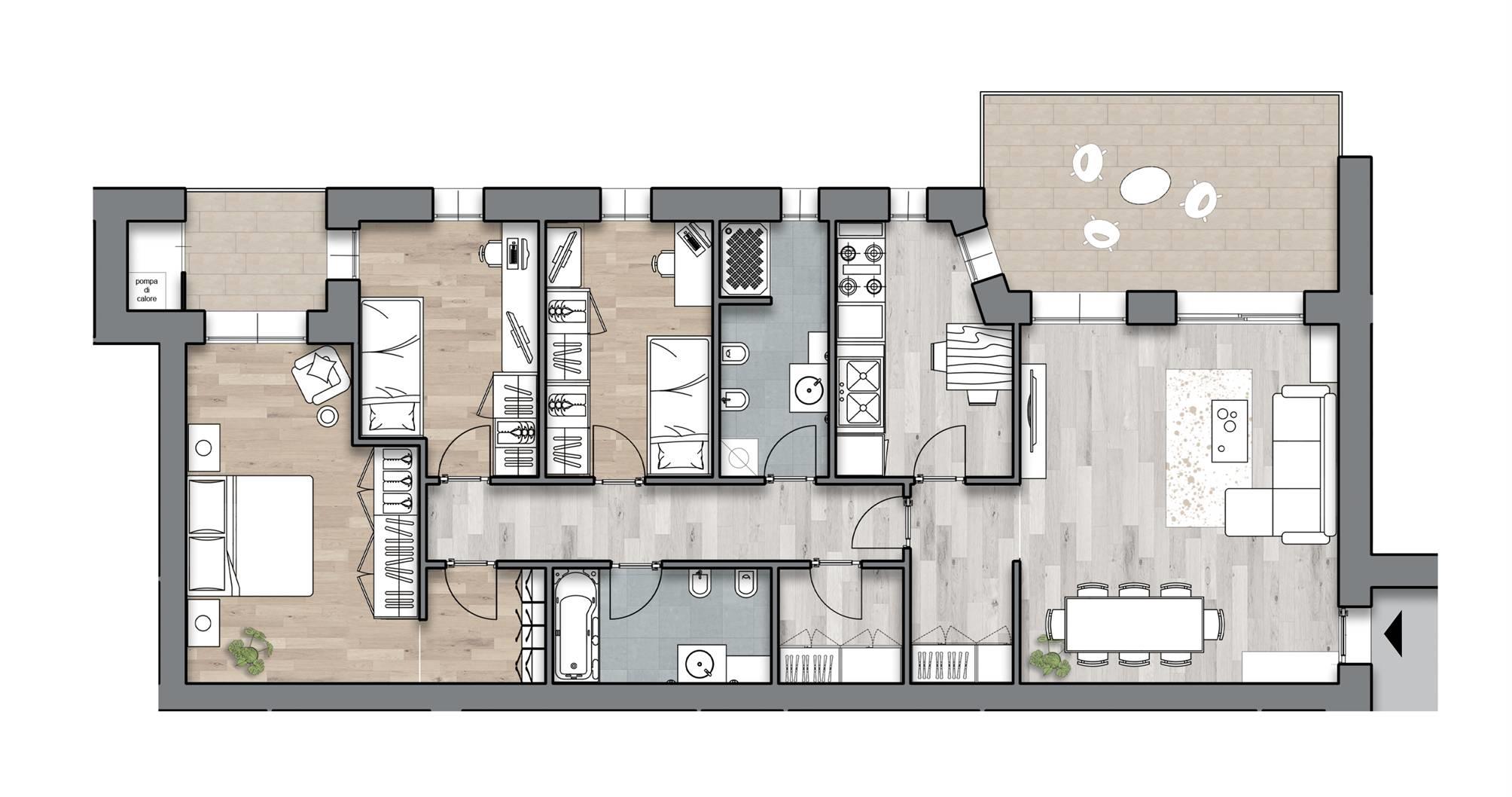 • Impianto di riscaldamento a pavimento e produzione di acqua calda sanitaria con pompa di calore