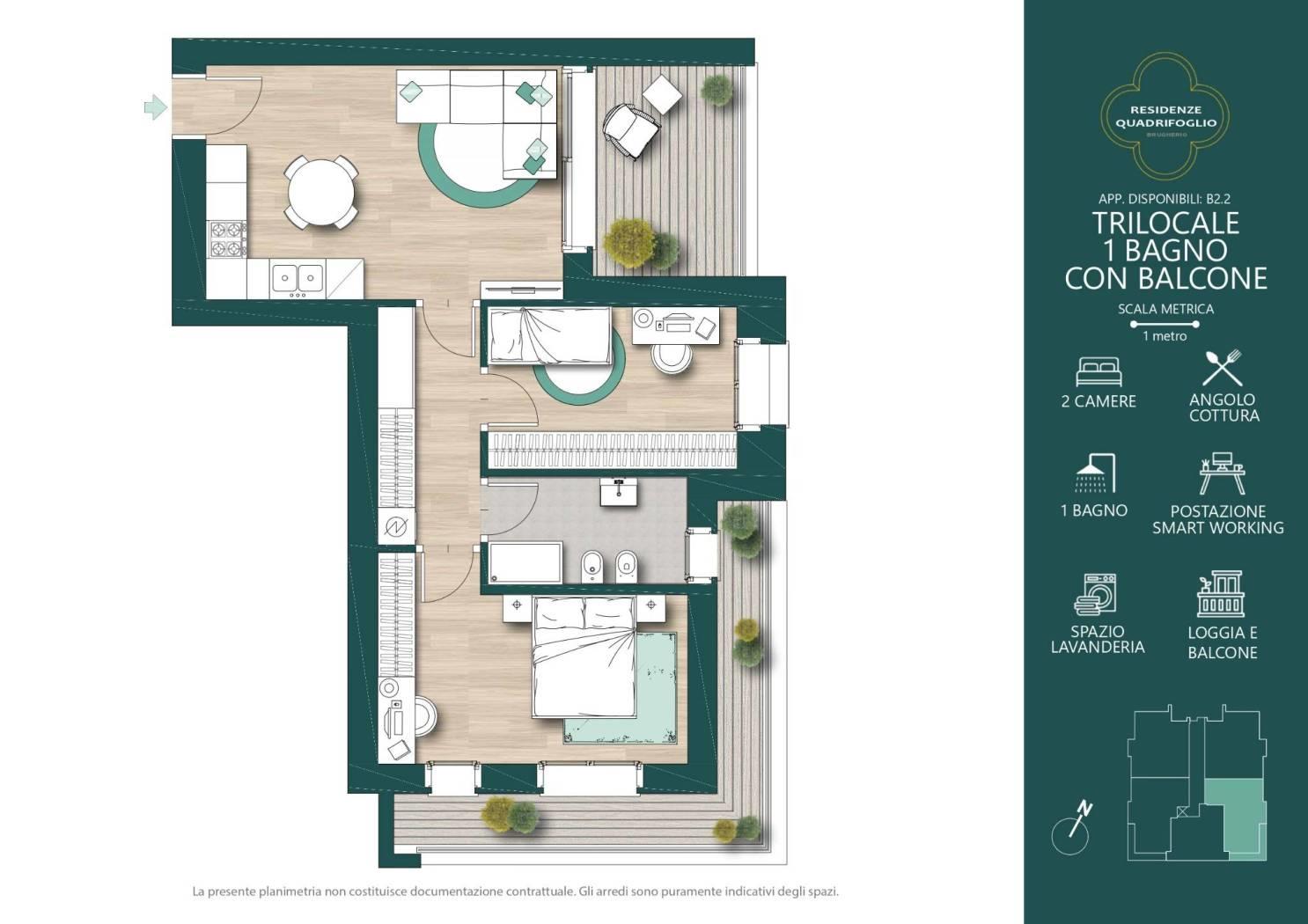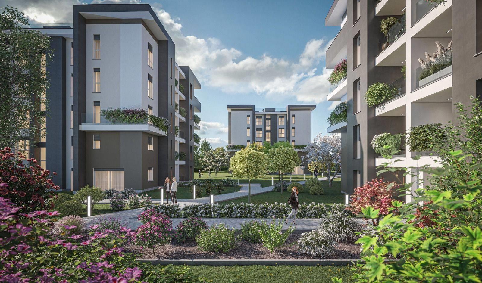 Residenze Quadrifoglio - La fortuna di abitare nel verde Residenze Quadrifoglio sono un complesso di quattro edifici, il secondo edificio che sarà realizzato sarà Quadrifoglio Verde. Le Residenze Quadrifoglio sono un complesso di quattro edifici residenziali. Il progetto dalle linee essenziali ed eleganti trova la sua dinamicità nell'alternarsi di pieni e vuoti in facciata, che danno vita a ombreggiate logge e spaziosi terrazzi. Gli appartamenti saranno in classe energetica A, il condominio sarà dotato di un impianto fotovoltaico. Tutti gli appartamenti saranno dotati di un impianto di ventilazione meccanica controllata per favorire il ricambio d'aria, la predisposizione per l'impianto di raffrescamento e la presenza di pannelli radianti a pavimento per il riscaldamento invernale. Le ampie finestrature e i parapetti vetrati permettono alla luce naturale di entrare all'interno degli ambienti, rendendo l'atmosfera accogliente e rilassante. Le Residenze Quadrifoglio sorgono in un contesto tranquillo circondato dal verde. La stretta vicinanza con il parco Increa, polmone verde della città di Brugherio, permette di praticare sport all'area aperta, o passeggiate rilassanti con i vostri amici a quattro zampe. Le Residenze sono situate a pochi chilometri di distanza dalla metropolitana M2 di Cologno Nord, e in stretta prossimità con l'ingresso della Tangenziale Est. *Tutte le immagini 3D sono pubblicate con il solo scopo illustrativo con una valenza puramente con una valenza puramente indicativa.