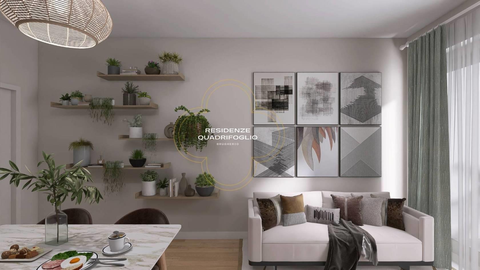 Residenze Quadrifoglio - La fortuna di abitare nel verde Residenze Quadrifoglio sono un complesso di quattro edifici, il secondo edificio che sarà realizzato sarà Quadrifoglio Verde. Le Residenze Quadrifoglio sono un complesso di quattro edifici residenziali. Il progetto dalle linee essenziali ed eleganti trova la sua dinamicità nell'alternarsi di pieni e vuoti in facciata, che danno vita a ombreggiate logge e spaziosi terrazzi. Gli appartamenti saranno in classe energetica A, il condominio sarà dotato di un impianto fotovoltaico. Tutti gli appartamenti saranno dotati di un impianto di ventilazione meccanica controllata per favorire il ricambio d'aria, la predisposizione per l'impianto di raffrescamento e la presenza di pannelli radianti a pavimento per il riscaldamento invernale. Le ampie finestrature e i parapetti vetrati permettono alla luce naturale di entrare all'interno degli ambienti, rendendo l'atmosfera accogliente e rilassante. Le Residenze Quadrifoglio sorgono in un contesto tranquillo circondato dal verde. La stretta vicinanza con il parco Increa, polmone verde della città di Brugherio, permette di praticare sport all'area aperta, o passeggiate rilassanti con i vostri amici a quattro zampe. Le Residenze sono situate a pochi chilometri di distanza dalla metropolitana M2 di Cologno Nord, e in stretta prossimità con l'ingresso della Tangenziale Est. *Tutte le immagini 3D sono pubblicate con il solo scopo illustrativo con una valenza puramente con una valenza puramente indicativa.