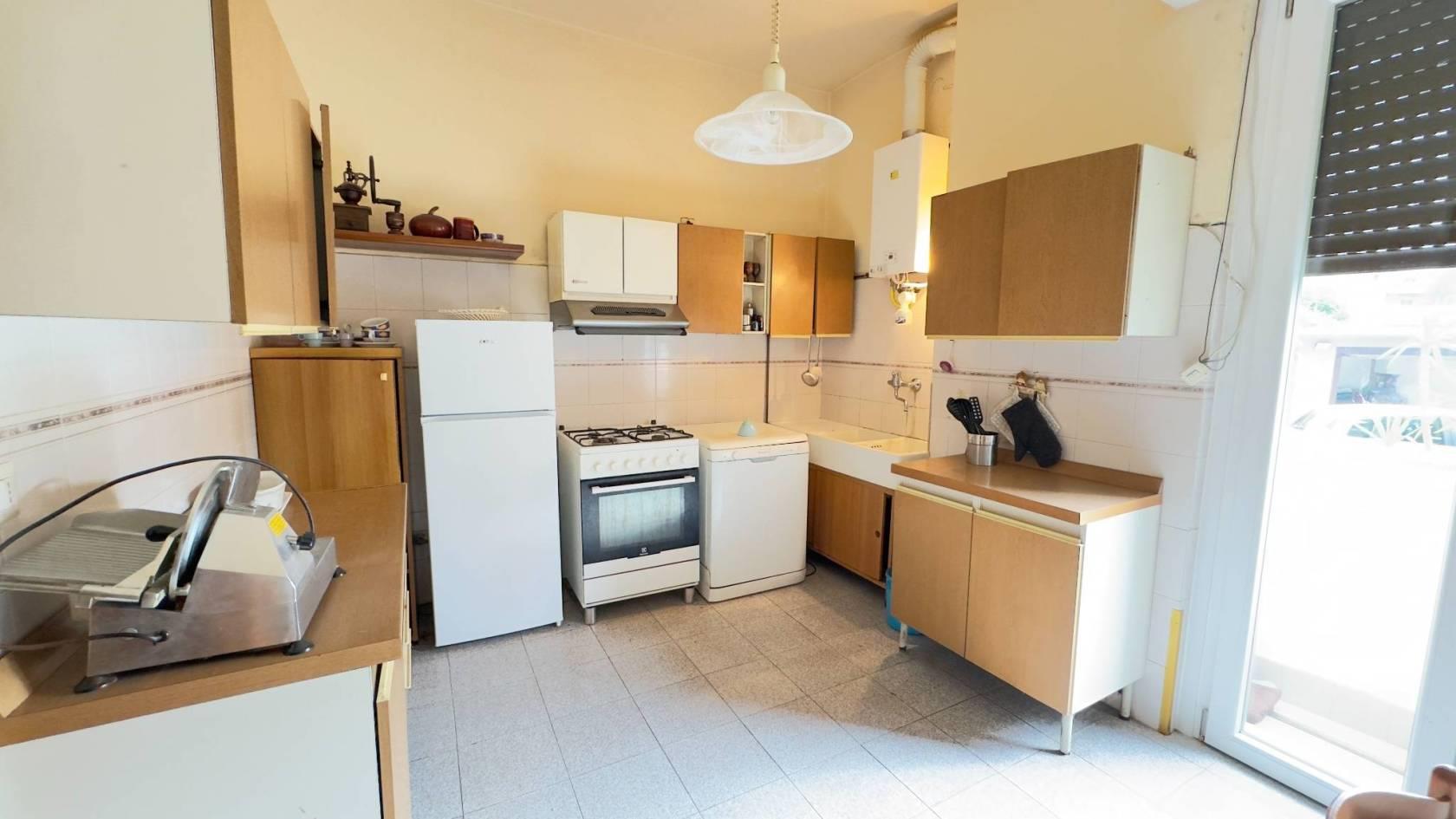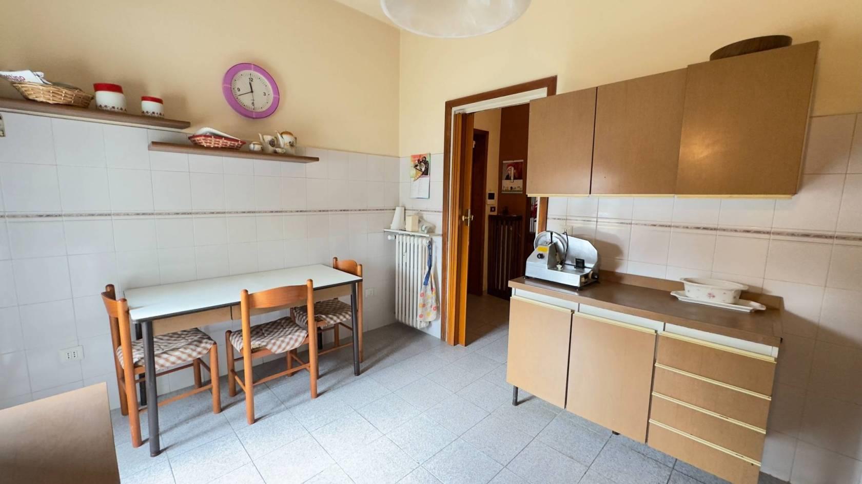 Vimercate, zona residenziale servita ed adiacente al centro, appartamento di tre locali di mq. 93 sito al piano rialzato composto da ingresso, soggiorno con balcone, cucina abitabile con piccolo balcone, disimpegno notte, due camere da letto e bagno padronale. La soluzione internamente necessita di alcuni lavori di ristrutturazione mentre a livello condominiale lo stabile è stato completamente rifatto nell'anno 2023 mediante superbonus 110% con posa di pannelli fotovoltaici, rifacimento facciata con cappotto termico, sostituzione di tutti i serramenti ora in PVC triplo vetro, tapparelle elettriche e tende da sole elettriche. Negli anni precedenti si era già intervenuti con il rifacimento del tetto e con la sostituzione della caldaia centralizzata. L'impianto di riscaldamento è centralizzato con termovalvole e contabilizzatori di consumo. Completa la proprietà un vano di cantina a piano interrato compreso nel prezzo. Possibilità di acquisto di un box singolo a piano terreno nel condominio al prezzo di Euro 16.000. Disponibile da subito.