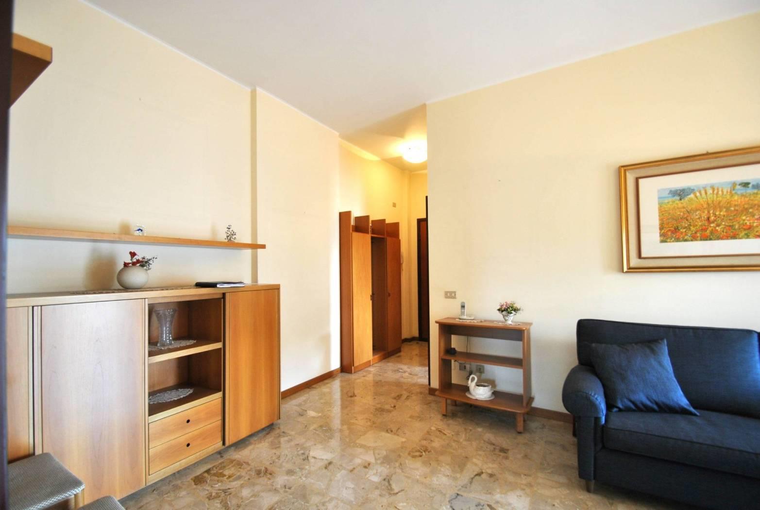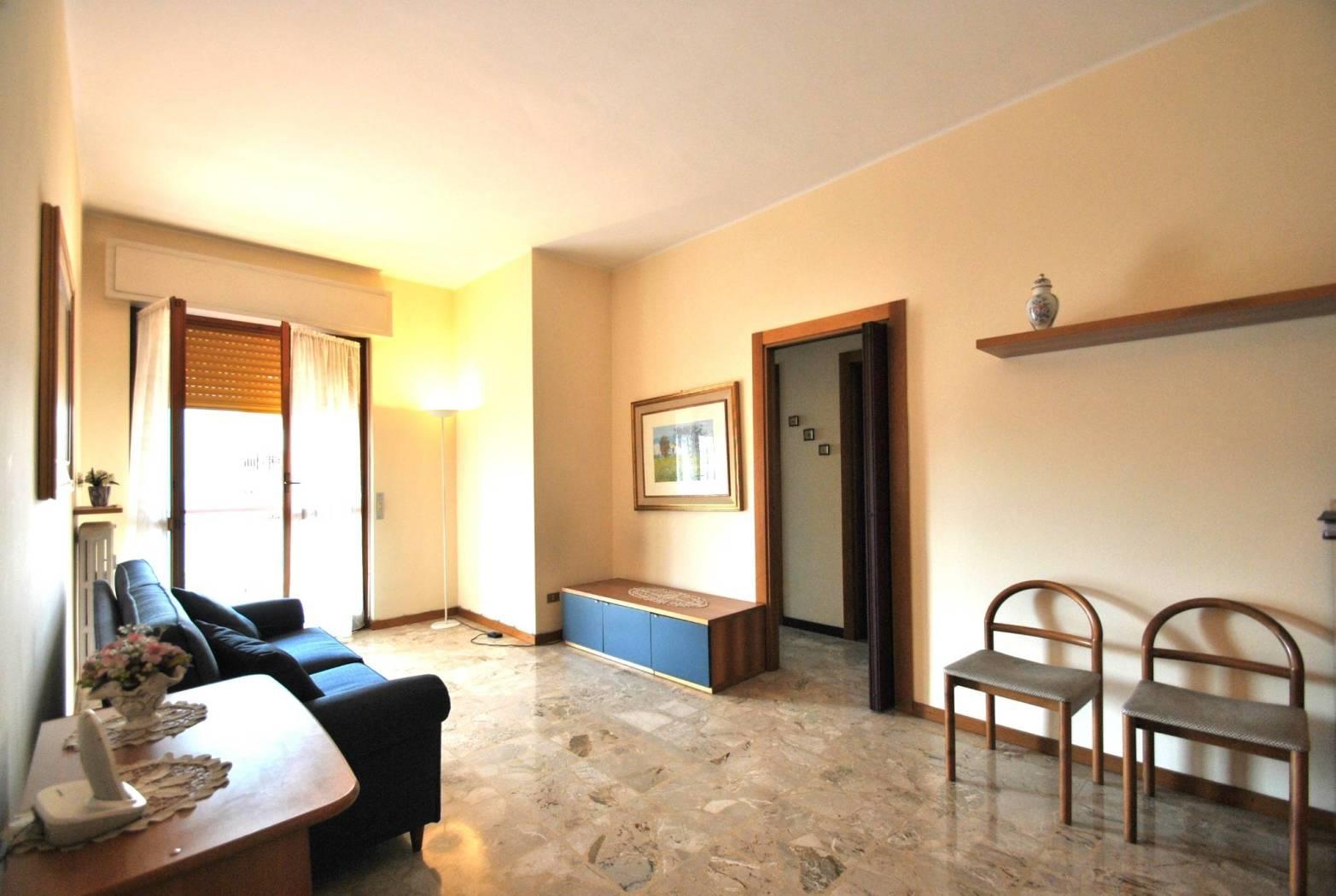 La costruzione del fabbricato è stata ultimata inizio anni '70: l'appartamento si presenta in buone condizioni, il bagno è stato ristrutturato, così come sono state sostituite le porte interne, le tapparelle, inclusa quella del soggiorno che è motorizzata e posata tenda da sole sul terrazzo; i serramenti sono in legno doppio vetro.