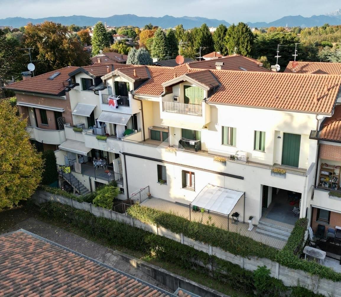In zona tranquilla e verdeggiante circondato da eleganti ville singole e a circa un 1.5 km dai principali mezzi di trasporto pubblici, scuole, parchi pubblici attrezzati, negozi ed uffici, su strada a fondo chiuso, recente residence edificato nel 2006 composto da appartamenti e ville a schiera.