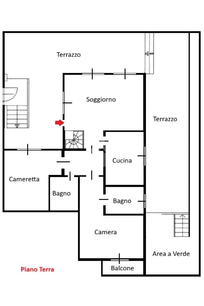 Il piano terra di 81 mq è composto da soggiorno con doppia porta finestra con accesso diretto al terrazzo, cucina abitabile, camera matrimoniale con affaccio sul balcone e con bagno privato finestrato con doccia e sanitari sospesi, disimpegno, bagno cieco con vasca e sanitari sospesi e cameretta capiente con affaccio sul terrazzo.