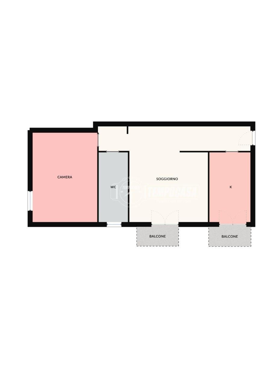 Ingresso sul disimpegno, comoda cucina abitabile con balcone, luminoso soggiorno con secondo balcone, bagno e camera matrimoniale.