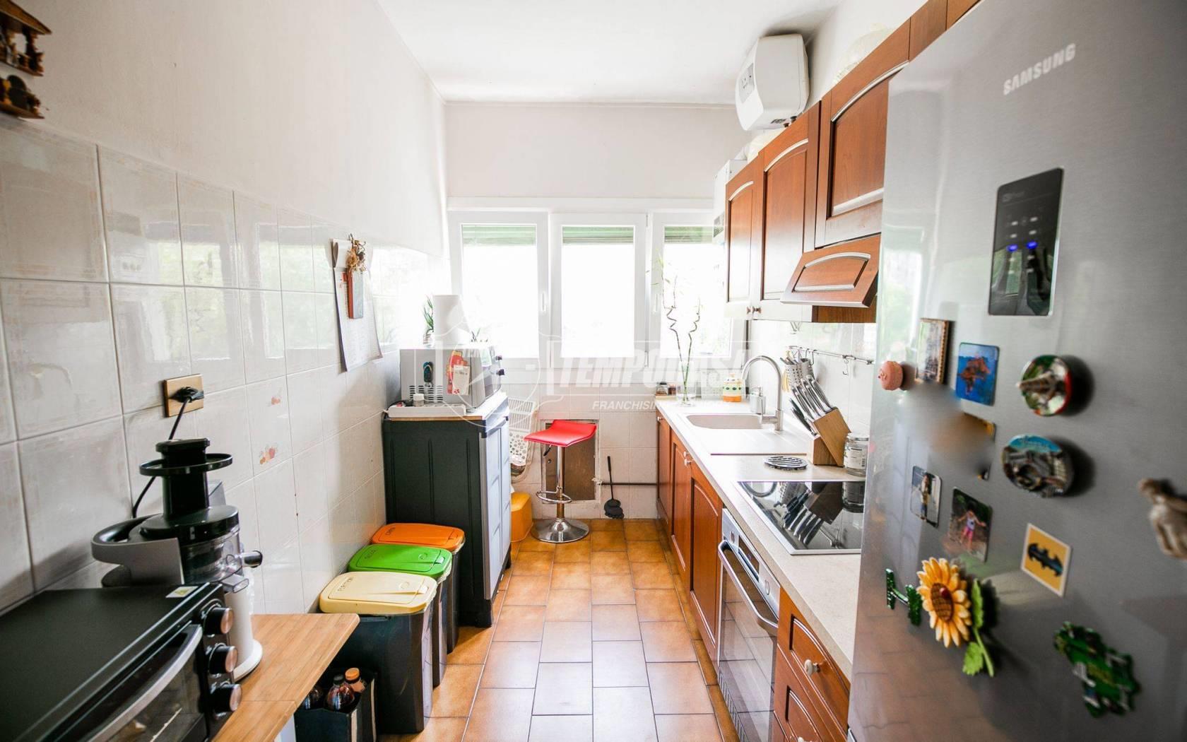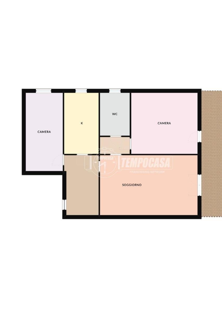 Ingresso con ampio e luminoso soggiorno, cucina separata, due spaziose camere da letto e bagno finestrato, dotato di box doccia; infine una terza stanza utilizzata come cameretta oppure come studio.