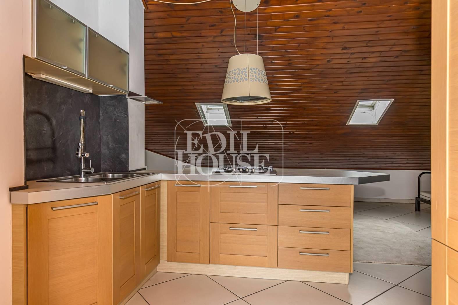L’appartamento, di circa 60 mq, si distingue per l’atmosfera calda e accogliente grazie alla mansarda rifinita in perline di legno a vista, che dona carattere e comfort all’ambiente.