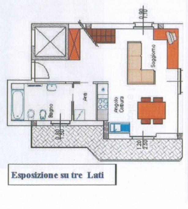 L'appartamento si sviluppa su due livelli al secondo e al terzo e ultimo piano, servito da ascensore. L'ingresso accoglie in un luminoso soggiorno con cucina arredata, che si apre su un ampio balcone ideale per momenti di relax. Un bagno con vasca completa il piano principale. Salendo la scala interna, si accede alla mansarda, dove trovi due camere da letto, una cabina armadio e un secondo bagno con doccia. Non perdere l'ampio terrazzo, perfetto per godere di splendide viste.