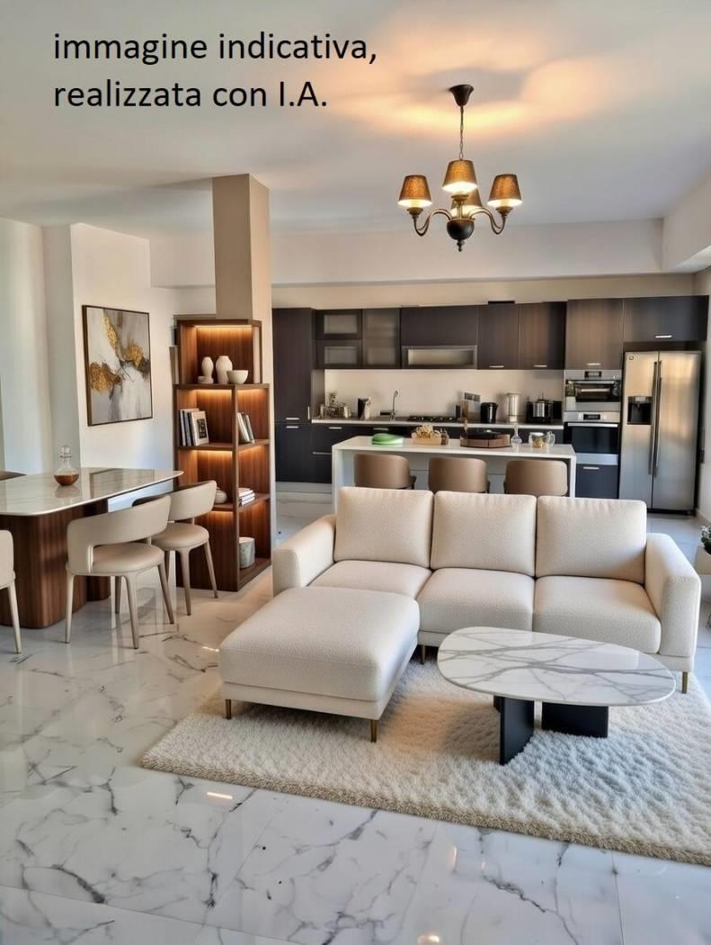 L'APPRTAMENTO è DI 121 MQ, composto da uno spazioso soggiorno con cucina a vista, balcone di 12 mq che, in prossimità della cucina, si allarga in modo da poter vivere al meglio lo spazio esterno.