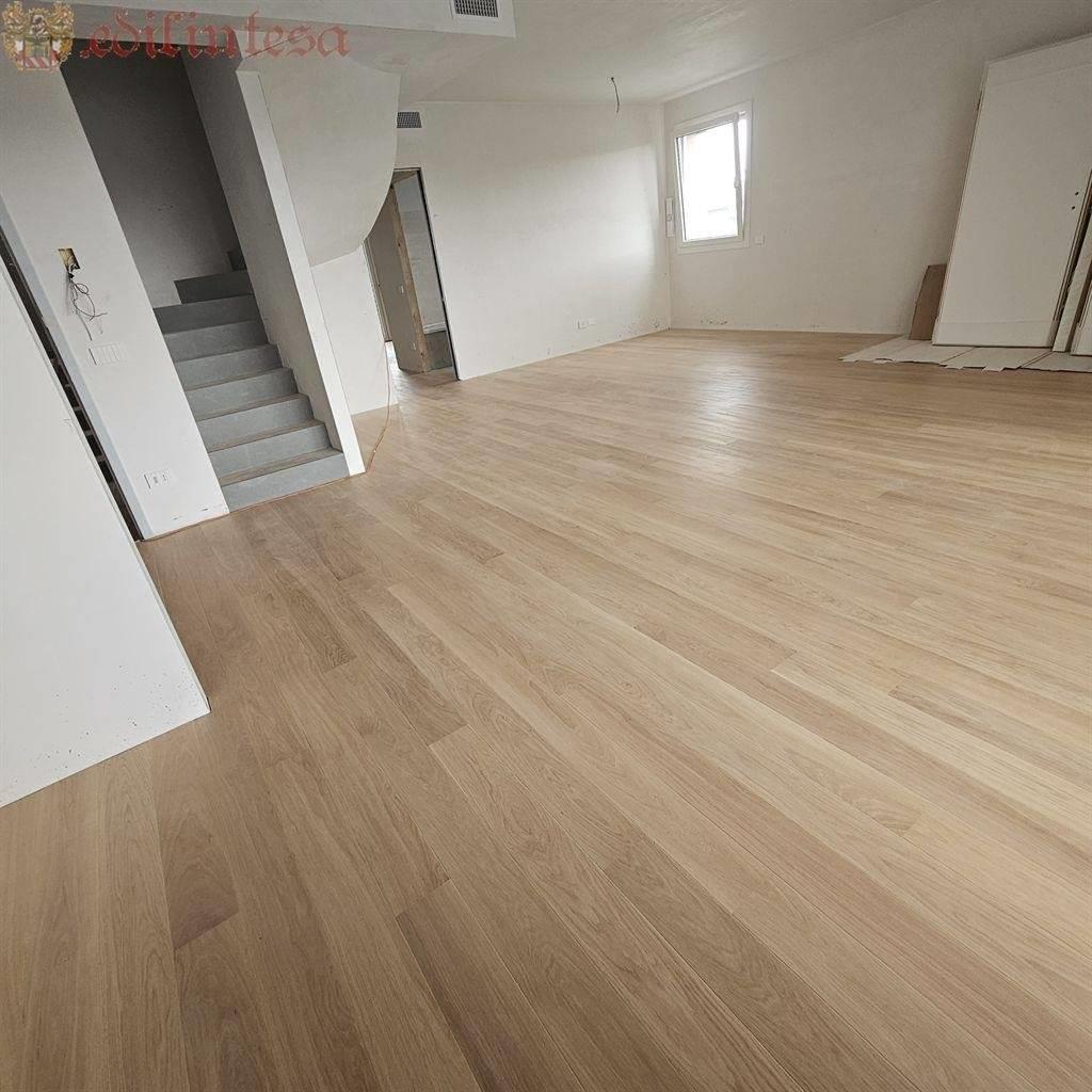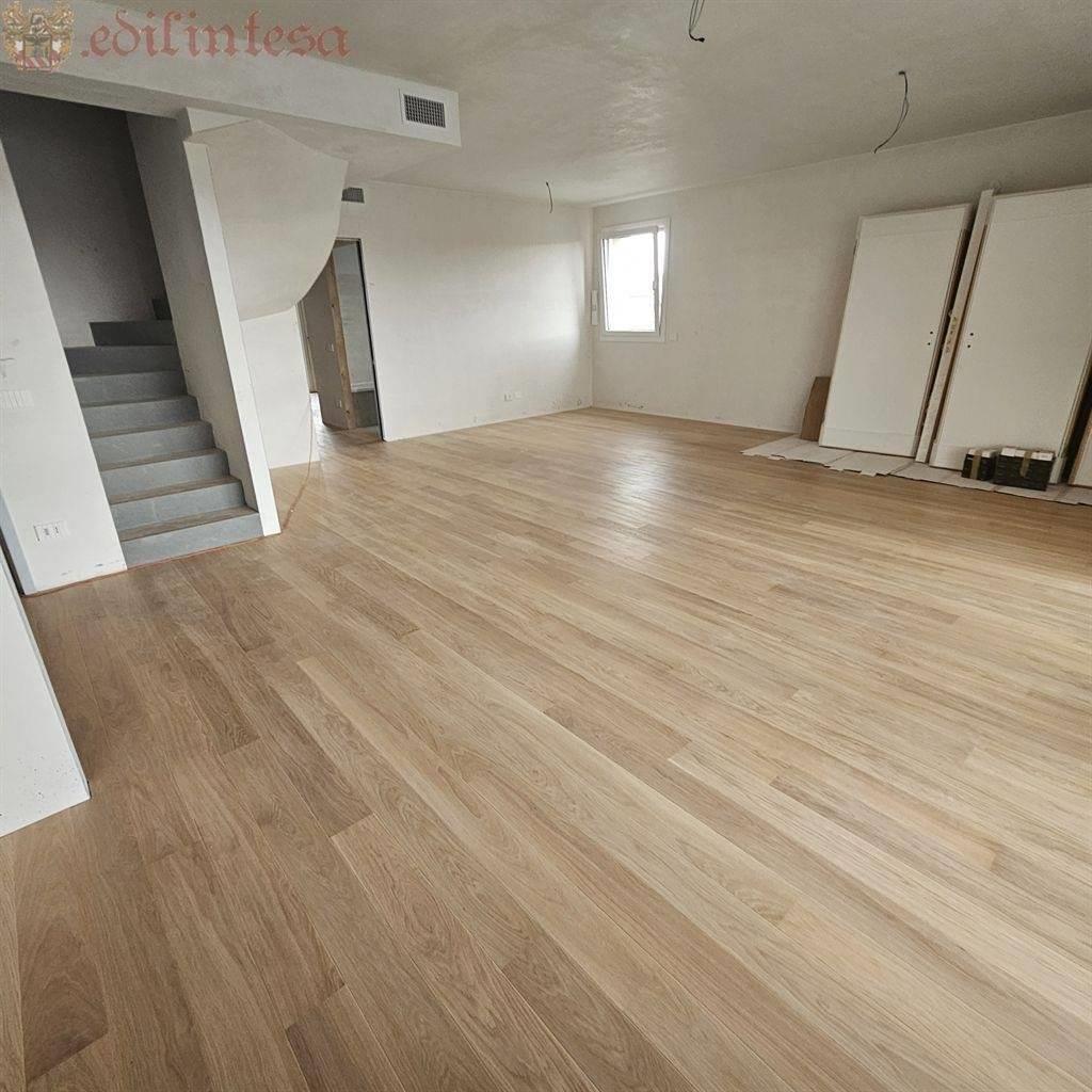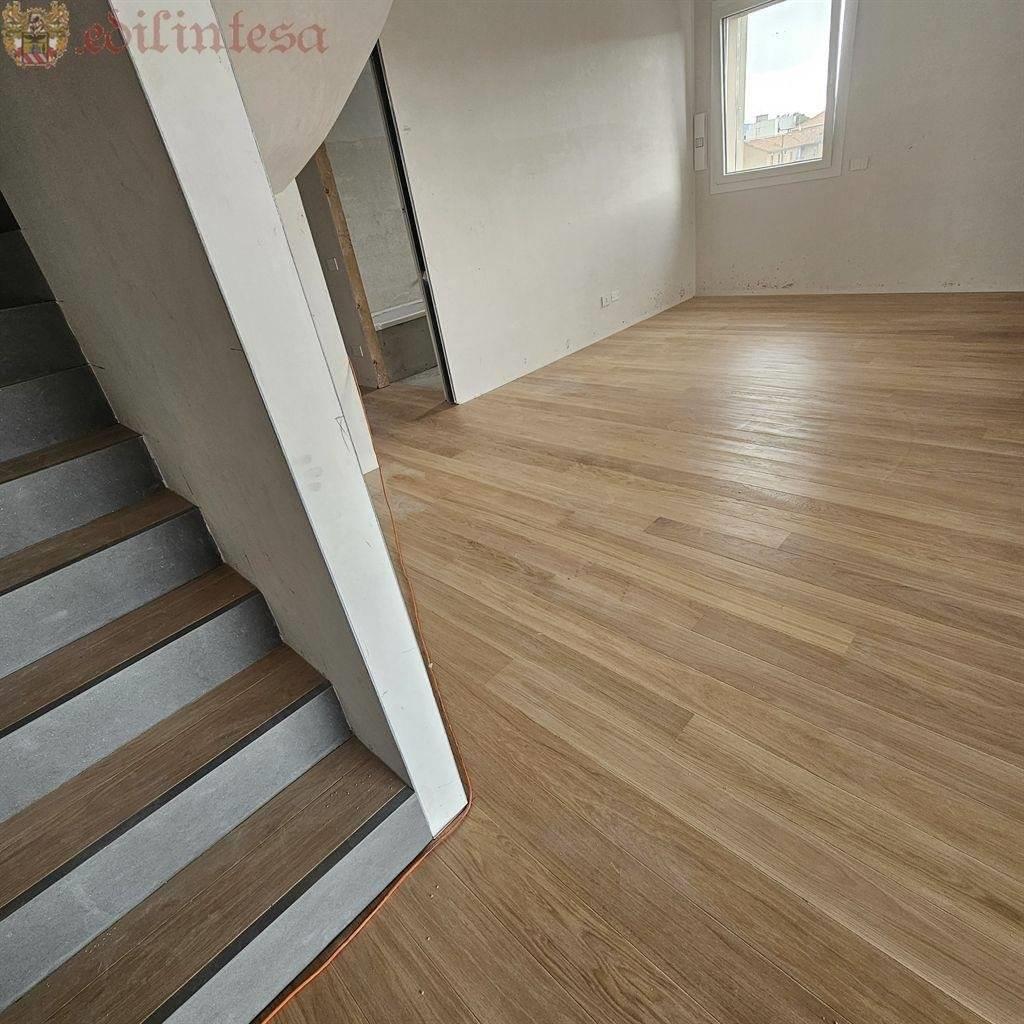 Tutte le superfici sono in pregiato parquet di chiara tonalita' ed il reparto notte, ha utili spazi riservati come la grande mansarda sovrastante raggiungibile tramite comoda scala anch'essa tutta pavimentata con parquet e marmo ornamentale.
