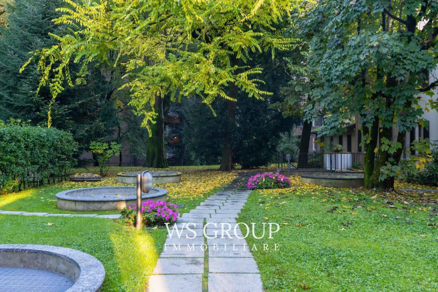Un giardino interno curatissimo, patii silenziosi e la portineria definiscono un contesto di assoluta riservatezza e attrattiva, a due passi dal centro storico e dalla Villa Reale (parco).