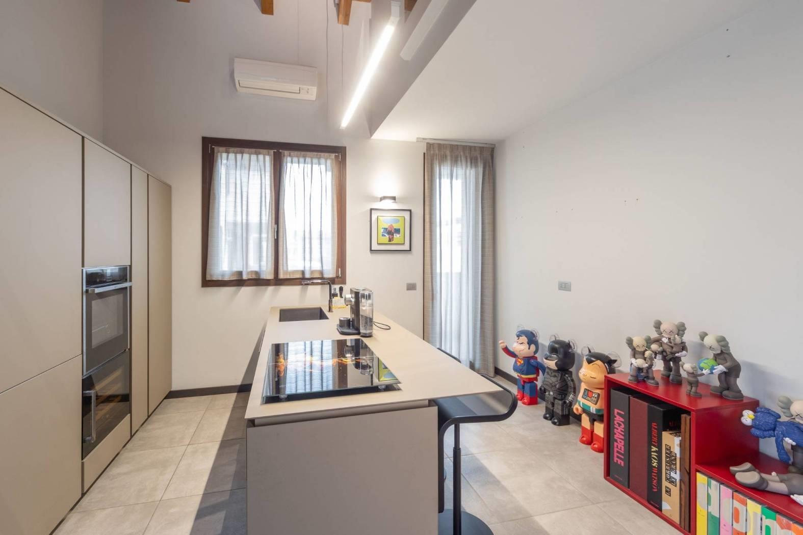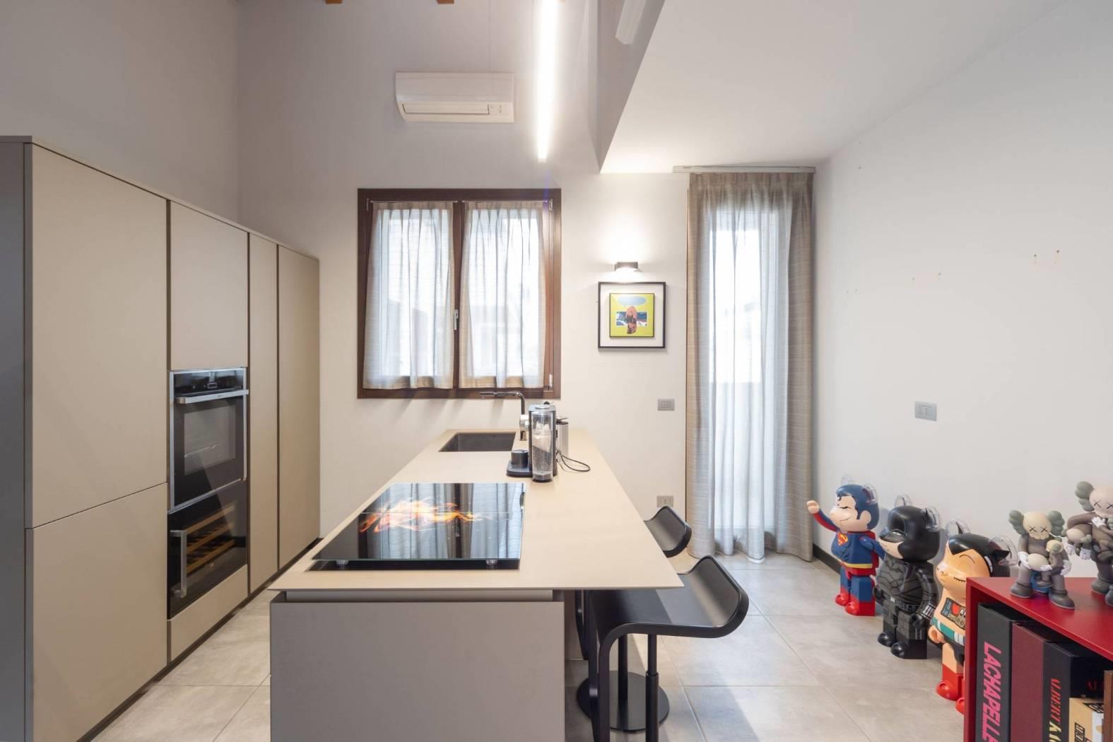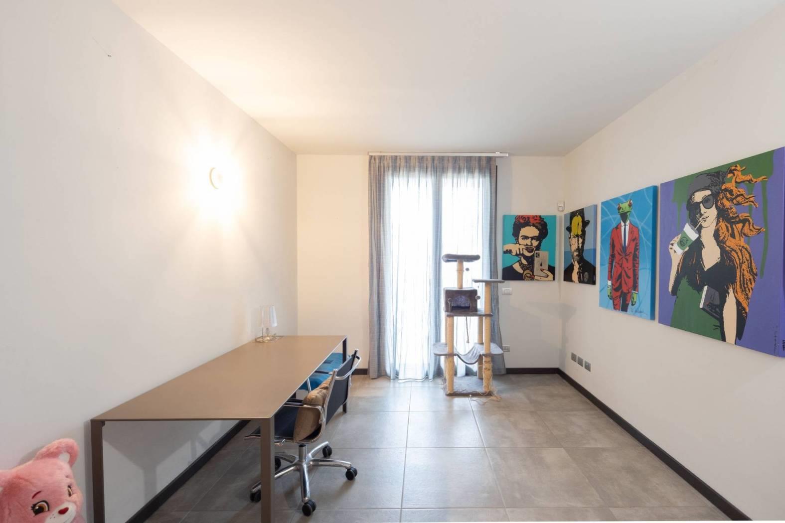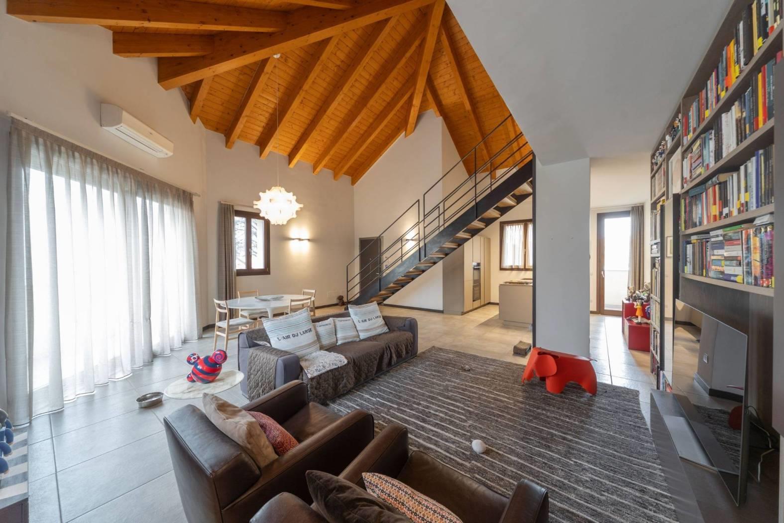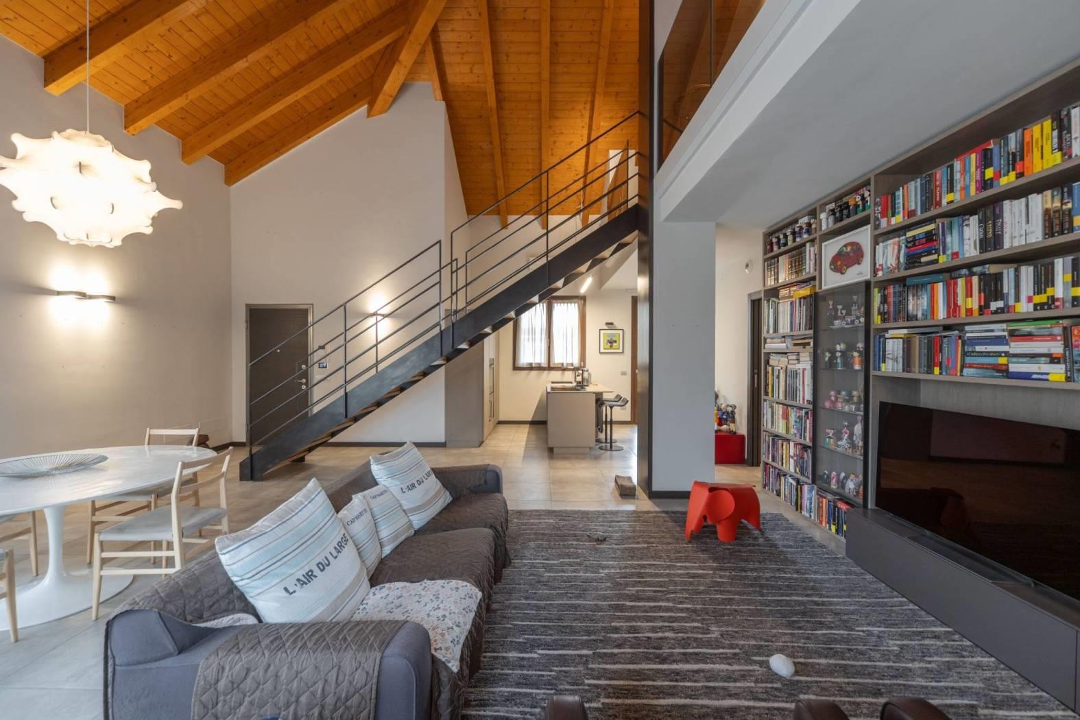 L’appartamento vanta finiture di pregio, con pavimenti e dettagli scelti fuori capitolato. Il soffitto con travi a vista aggiunge ulteriore fascino, rendendo la soluzione abitativa unica e di grande appeal. Ogni dettaglio è stato pensato per offrire estetica e funzionalità.