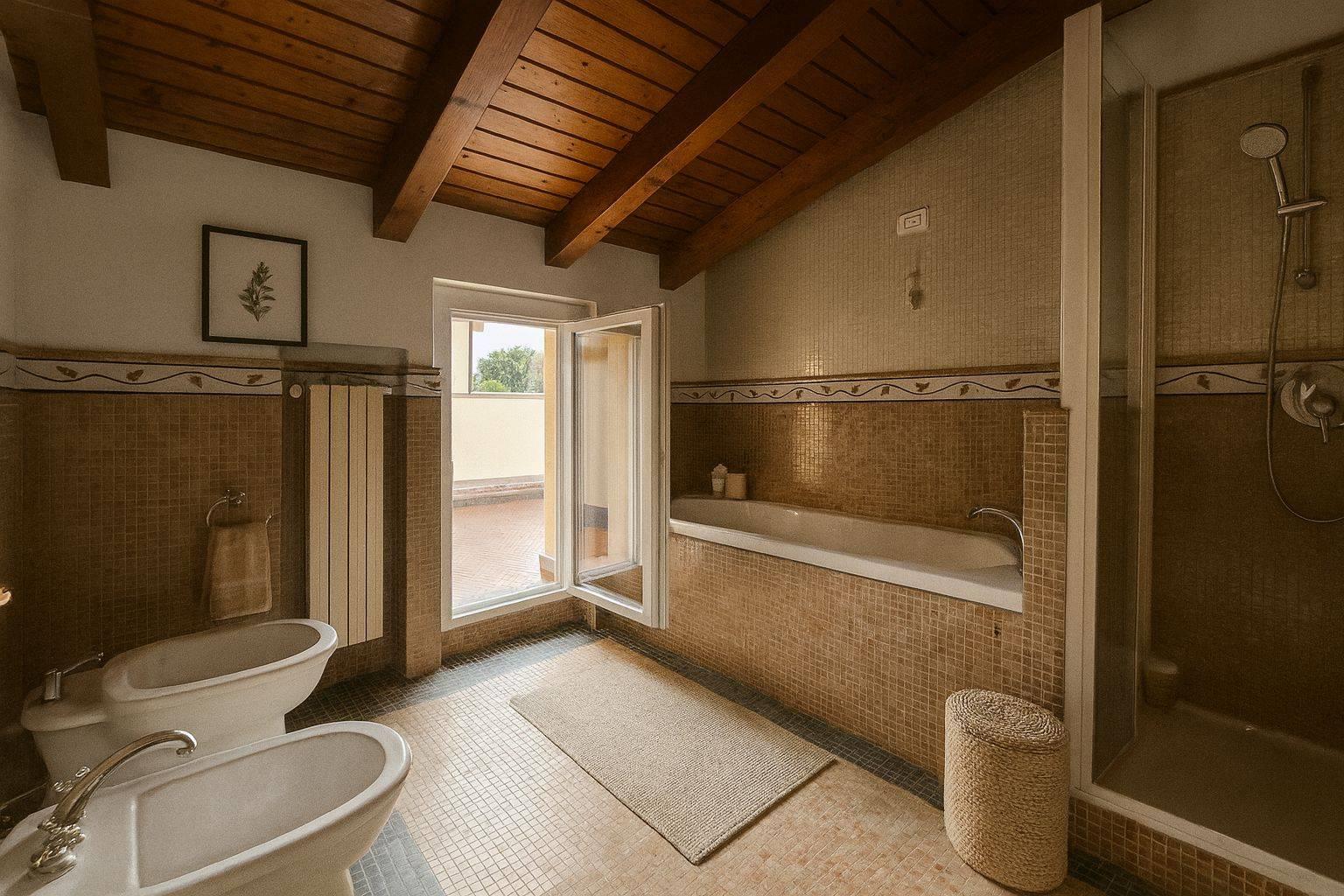 Fiore all’occhiello dell’attico è il terrazzo di 25 mq: ideale per pranzi all’aperto, momenti di relax o semplicemente per godersi il sole in totale privacy. L’esposizione sui quattro punti cardinali garantisce luce naturale durante tutto l’arco della giornata e un’eccezionale aerazione degli ambienti.