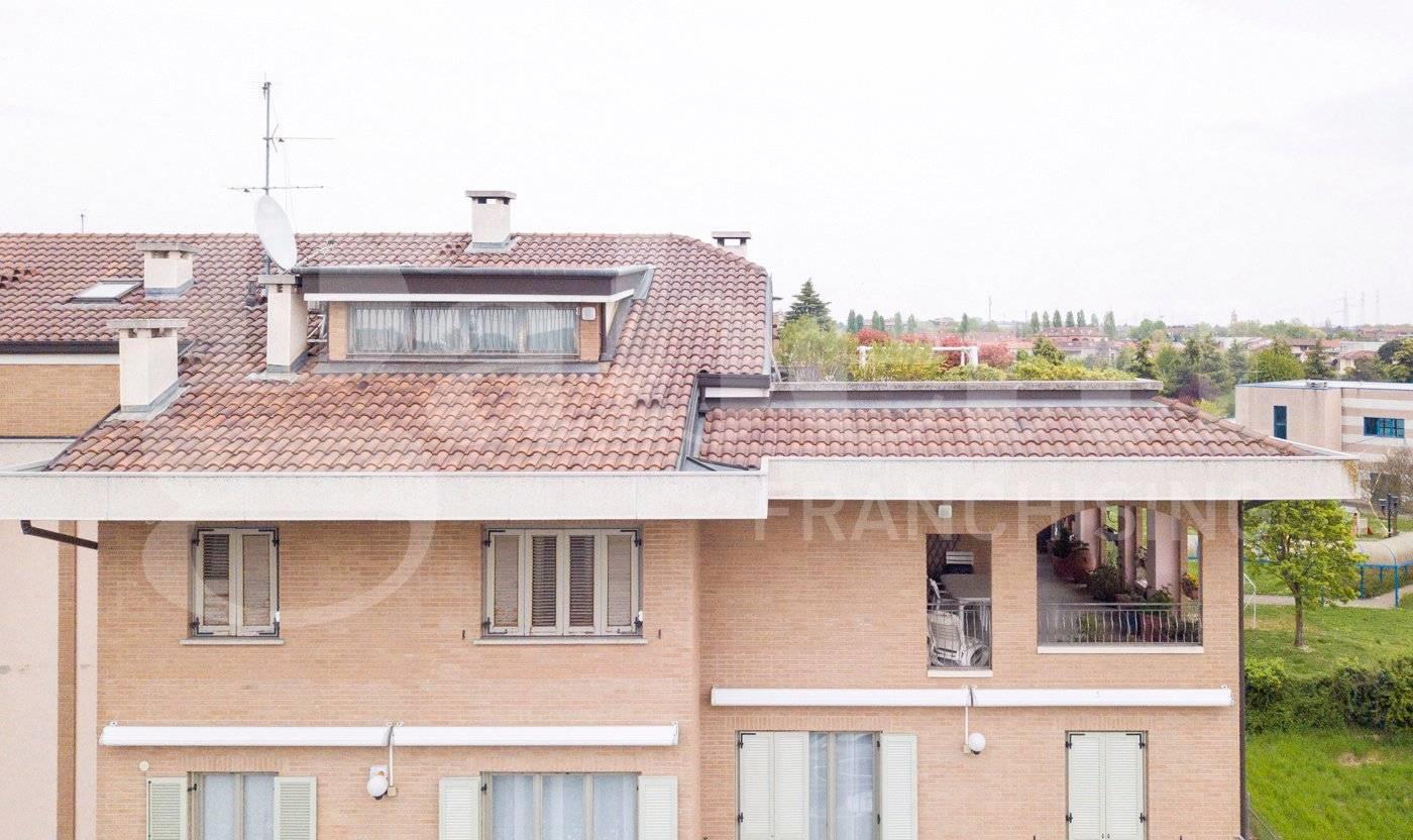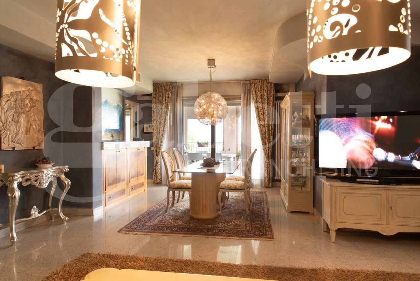 CESANO MADERNO Cassina Savina – Proponiamo un attico in una delle residenze più prestigiose e rappresentative del quartiere all'interno di uno splendido giardino condominiale di ca 3000 mq. L' abitazione con una superficie di 155 MQ si trova al terzo piano servito dall'ascensore, composto da: ingresso direttamente sul salone doppio diviso in zona pranzo, divani/conversazione e zona TV, si prosegue con la cucina abitabile con accesso sul terrazzo coperto di ca 40 mq, bagno di servizio, un corridoio ci conduce nel reparto notte costituito da tre camere e un bagno padronale. L'appartamento è caratterizzato dalla tripla esposizione Sud-Est-Ovest ed è libero su tutti e quattro i lati. Al momento nell'appartamento è presente la scala interna che conduce al Superattico, tale scala verrà rimossa dalla proprietà e al suo posto verrà realizzato un ripostiglio. Termoautonomo con aria condizionata/inverter in tutti i locali, abbinato all'immobile vi è una cantina di generose dimensioni accessibile sia esternamente sia dal box doppio ad uso autorimessa, attualmente collegato con un altro box ma divisibile anche questo. La posizione strategica dell'appartamento permette di raggiungere facilmente tutti i servizi essenziali: la stazione di Seregno, le fermate dei mezzi, il supermercato, l'Oratorio, la Chiesa, la farmacia, le Poste, la scuola dell'infanzia e la scuola primaria. Euro 425.000,00 Classe energetica D. 110,64