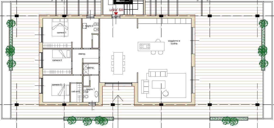 Attraverso un comodo disimpegno si accede alla zona notte dove troviamo una camera matrimoniale, un secondo bagno finestrato, due camere singole e una cabina armadio. Tutte le stanze hanno accesso diretto al terrazzo.