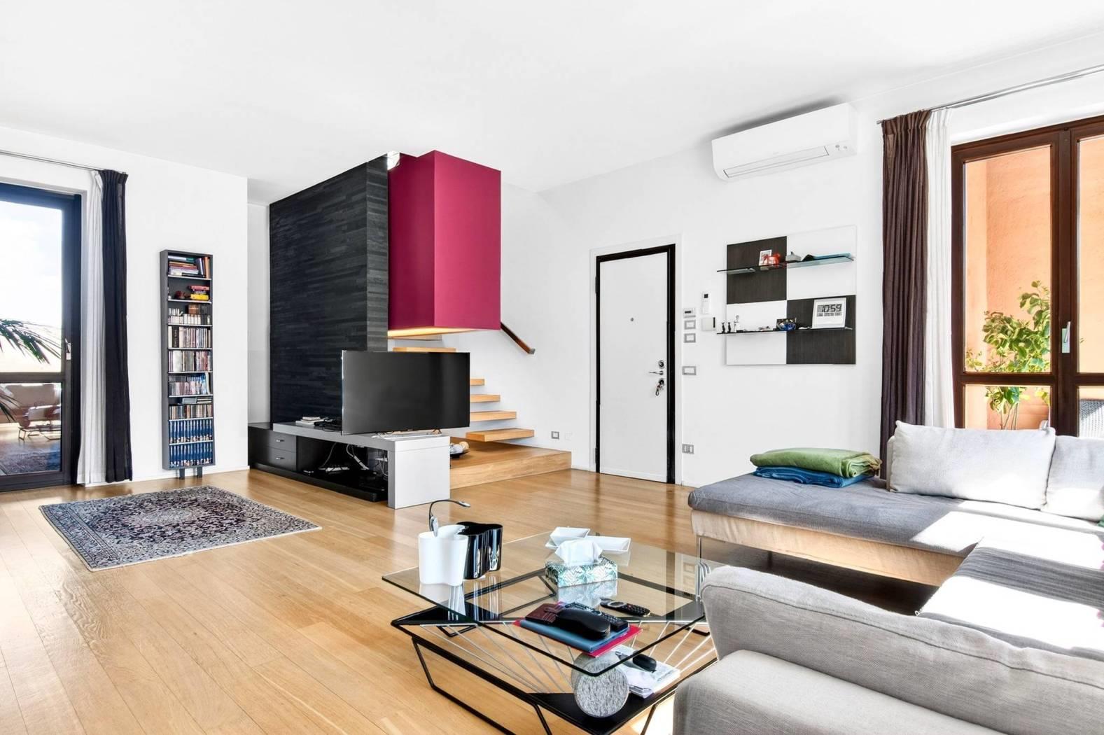 In elegante contesto residenziale immerso in un curato parco condominiale, proponiamo in vendita prestigioso appartamento su due livelli posto all’ultimo piano, servito da ascensore.