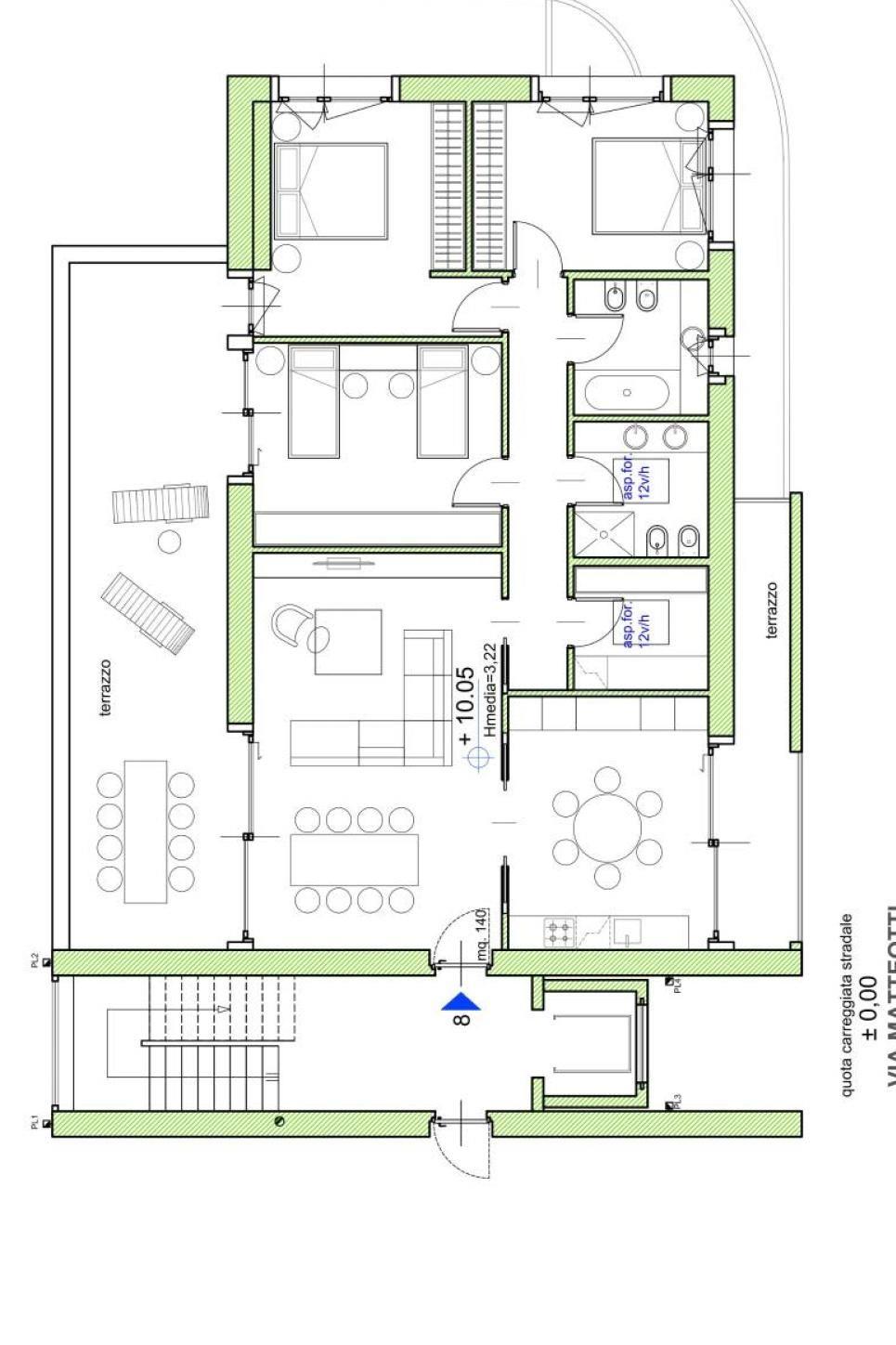 L’ appartamento n. 8 sito al primo terzo è un attico mansardato di circa 150 metri con un ampio terrazzo di 40 metri nella zona giorno oltre ad ampia balconata in cucina.
