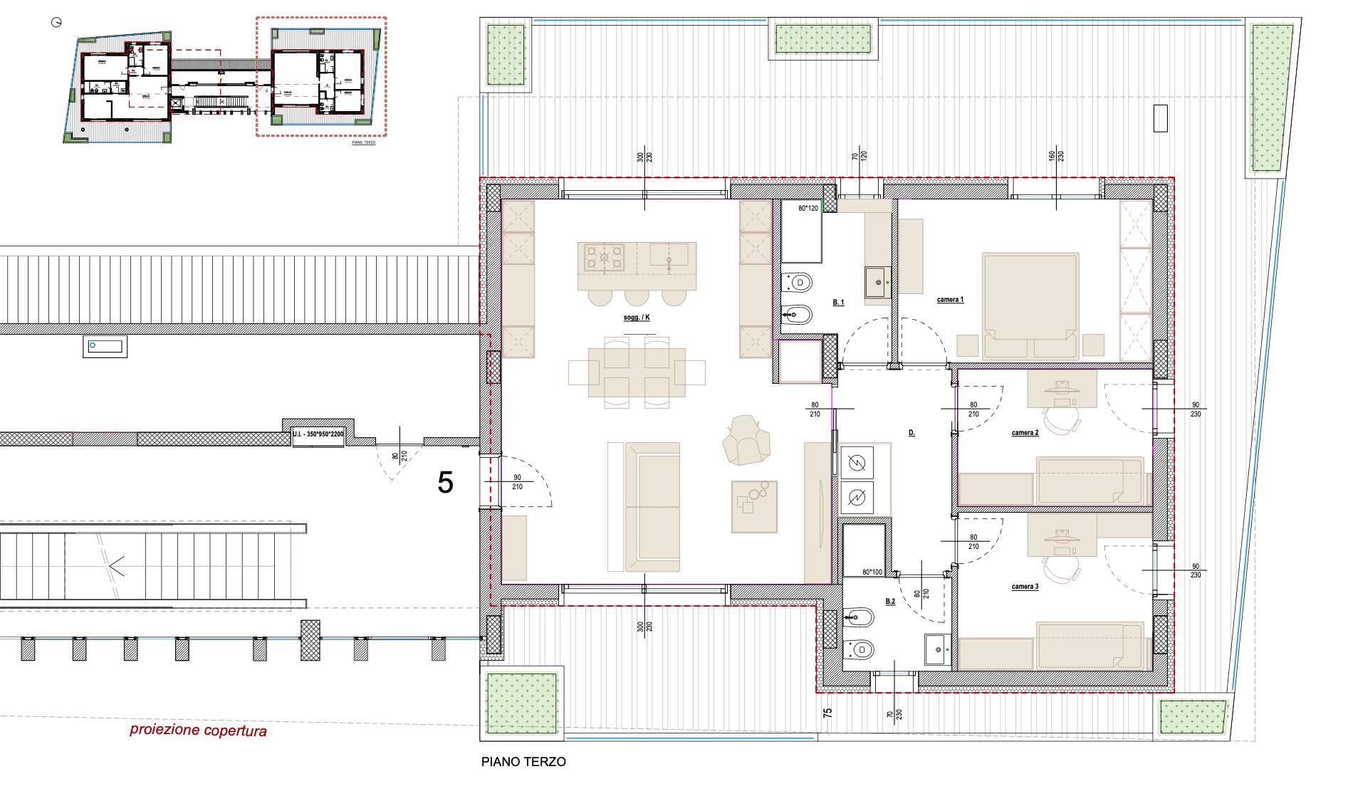 Qui, all’ultimo piano di un contesto esclusivo di sole 6–7 unità abitative, sta nascendo un attico unico nel suo genere, pronto per fine 2026: libero su quattro lati, circondato da un terrazzo spettacolare di circa 85 mq che abbraccia tre lati della casa, regalando scorci, panorami, respiro. Un vero prolungamento del soggiorno, un luogo dove vivere all’aperto, ricevere, rilassarsi, coltivare, sognare.