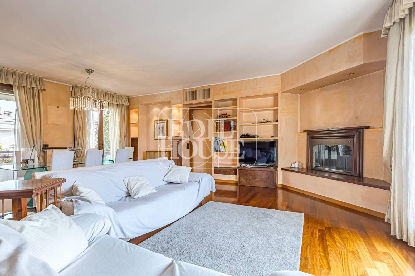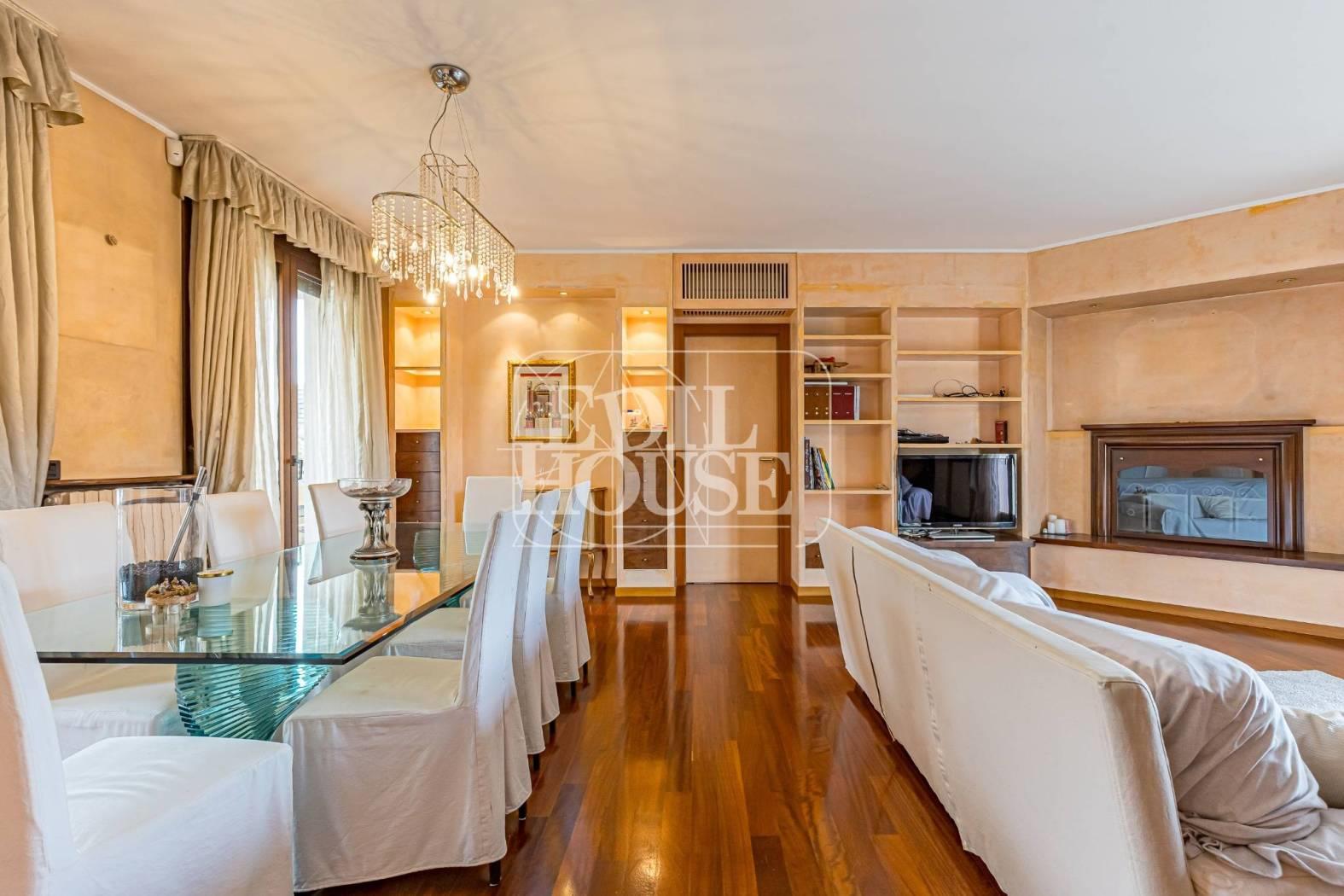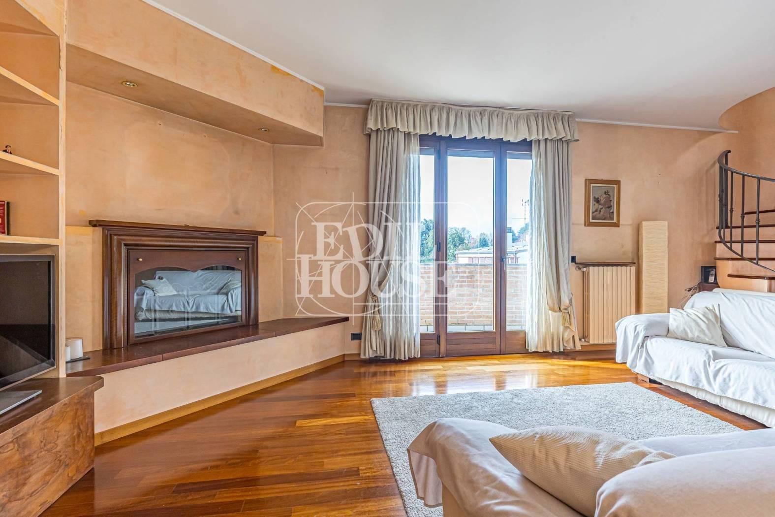 Al Piano terzo di circa 130 metri con terrazzi per un totale di 27 metri quadrati, l ’ingresso conduce a un ampio e luminoso soggiorno, impreziosito da un raffinato camino funzionante, perfetto per creare un’atmosfera calda e accogliente nelle stagioni più fredde. L’ambiente è ulteriormente valorizzato da nicchie con illuminazione a faretti, che donano carattere e ricercatezza.