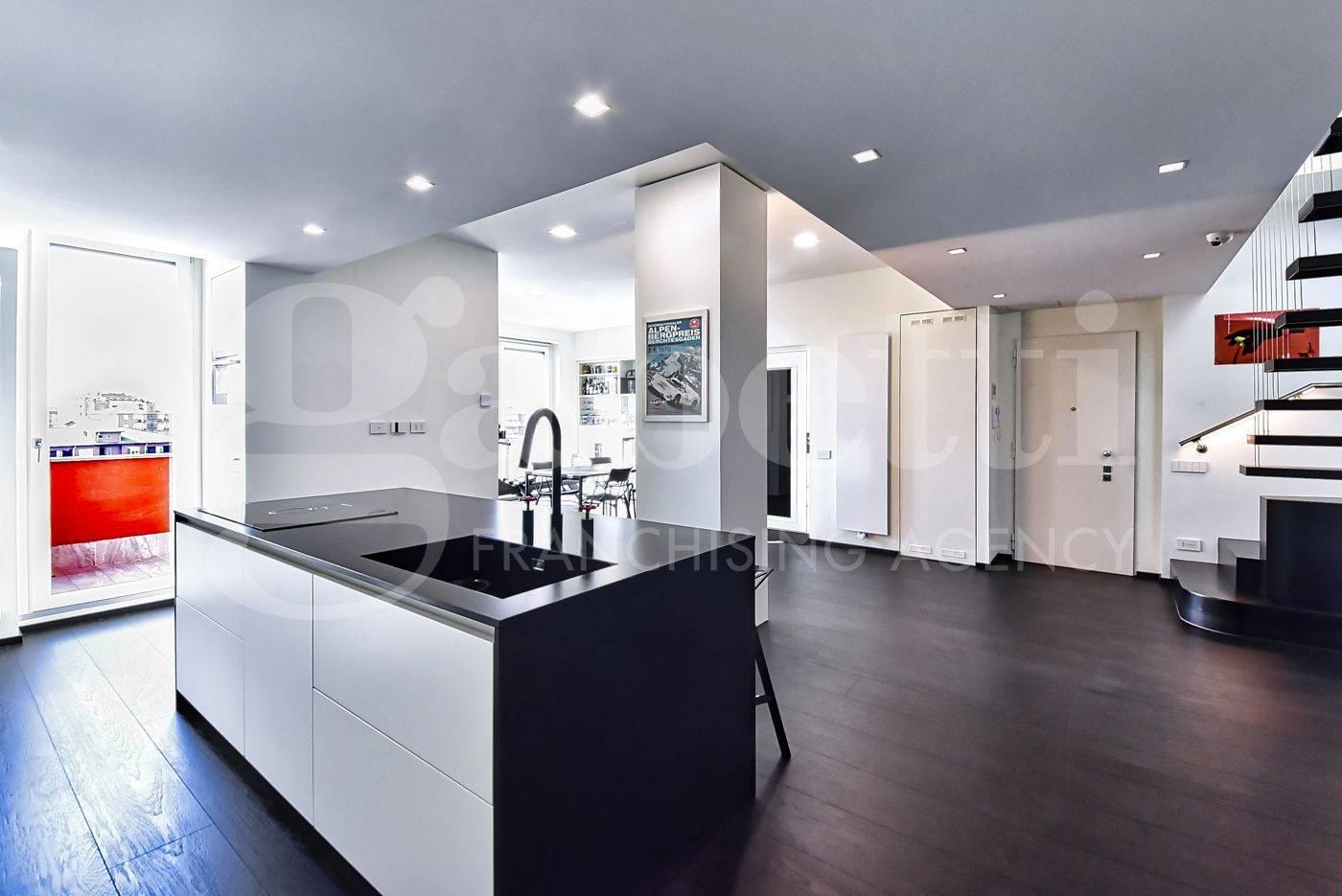 Ottime le FINITURE e le DOTAZIONI IMPIANTISTICHE: l’abitazione è stata completamente ristrutturata con materiali di pregio, climatizzazione, domotica e arredi su misura (compresi nel prezzo), elementi che restituiscono una soluzione pronta, contemporanea e di elevato standing. Completa la proprietà un vano CANTINA e la possibilità di DUE BOX (30.000€ cad. a parte).