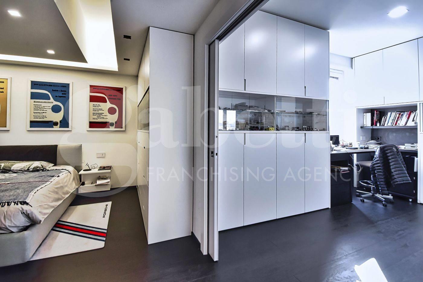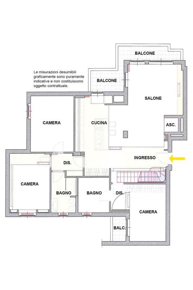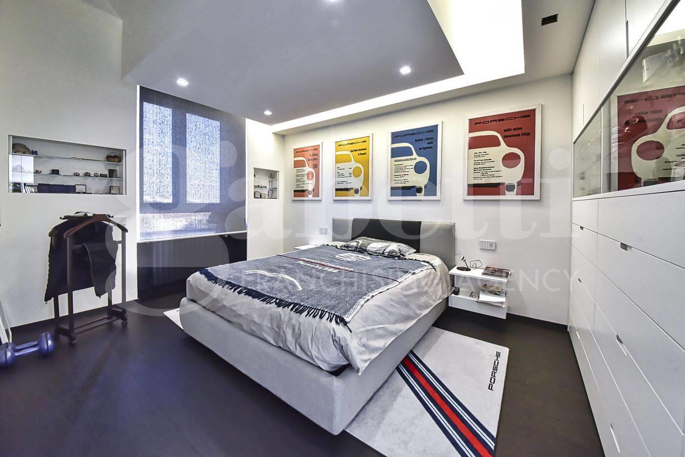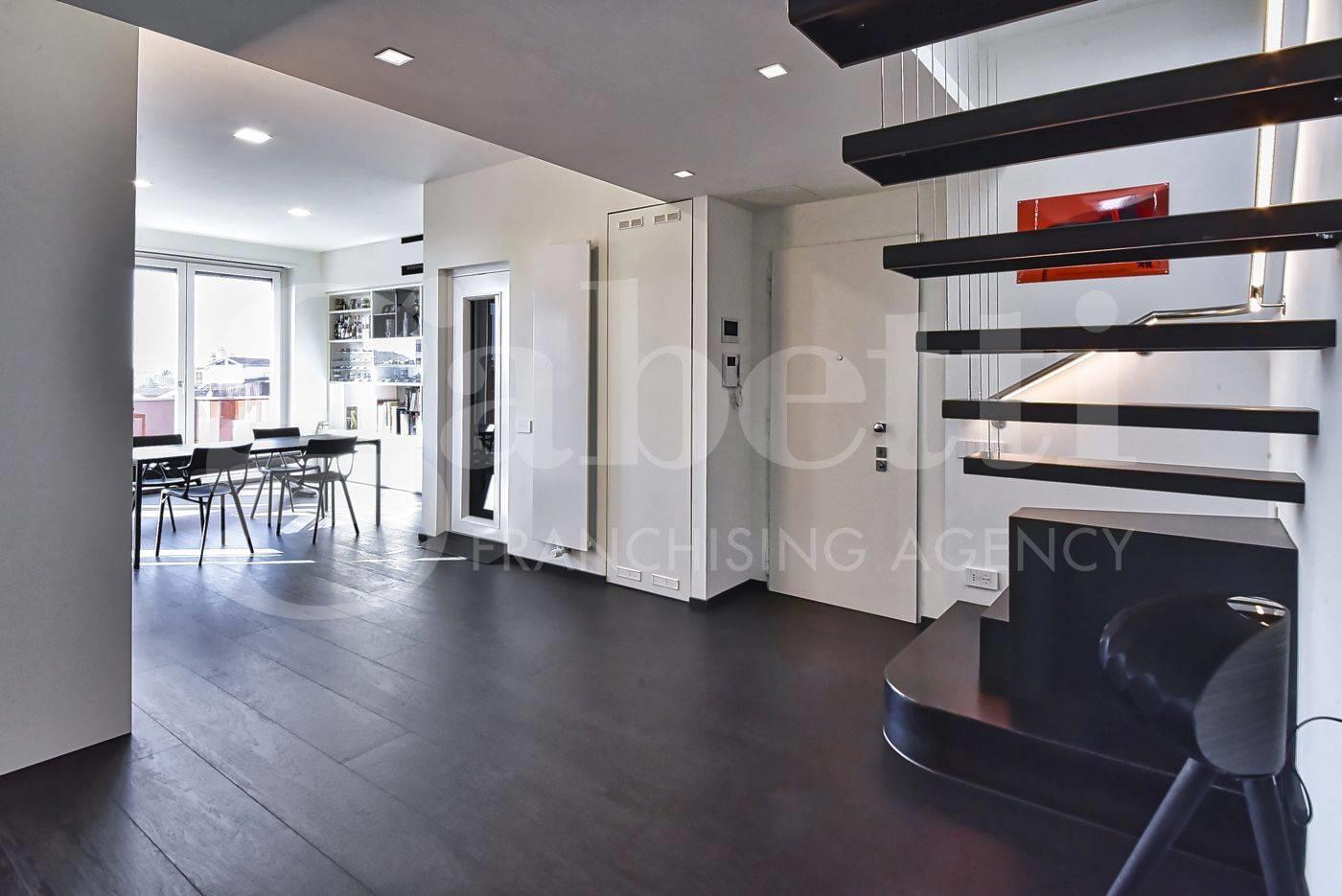 Gli ambienti sono così disposti: ingresso con ASCENSORE PRIVATO su AMPIO SALONE con cucina a vista e accesso al BALCONE; un comodo disimpegno conduce alla zona notte composta da due CAMERE DA LETTO e un BAGNO FINESTRATO. Completano il piano un ulteriore disimpegno con una TERZA CAMERA con BALCONCINO e BAGNO PADRONALE. Una scenografica scala interna accompagna al livello superiore, pensato come autentico piano “da vivere” con l'ampia ZONA LIVING dal taglio moderno impreziosito dalle funzionali vetrate, un BAGNO FINESTRATO ed il magnifico TERRAZZO di circa 50 mq, vero fulcro conviviale della casa, ideale per ricevere e per vivere momenti di relax in assoluta privacy.