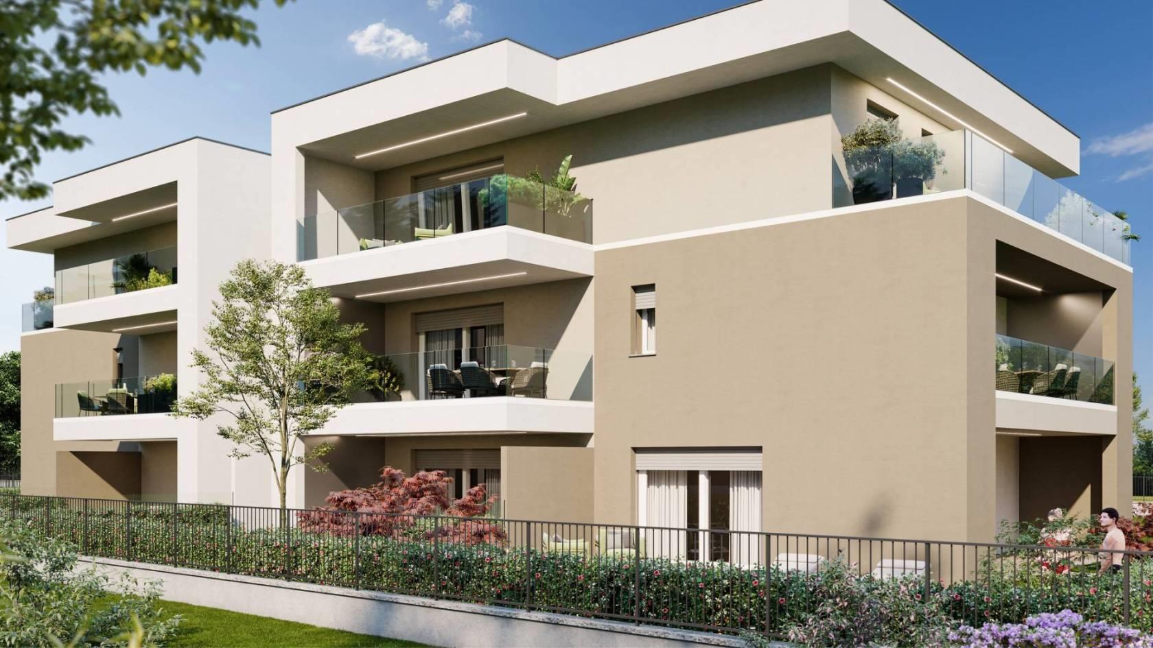 Bernareggio - In una delle zone più esclusive e riservate proponiamo in vendita un prezioso attico posto al piano secondo servito da ascensore, i cui lavori inizieranno in estate del 2026. L'immobile si sviluppa su un unico livello abitativo e grazie all'utilizzo di materiali di alta qualità e alla cura dei dettagli sarà certificato in classe A4. L'immobile che verrà completato nel 2027, si estende su una superficie totale di 124 mq. Gli spazi interni sono ampi e luminosi, grazie alla presenza di grandi aperture che garantiscono una perfetta illuminazione naturale durante tutto l'arco della giornata. L'immobile è dotato di un moderno sistema di riscaldamento autonomo a pompa di calore che garantisce un elevato livello di comfort e un notevole risparmio energetico. La soluzione è composta da 4 locali, tra cui 3 camere da letto di cui una suite con bagno privato, un secondo bagno oltre a due terrazzi ampi e coperti, con parapetto in cristallo. Gli infissi con triplo vetro in PVC assicurano un'ottimo isolamento termico e acustico. L'esposizione sud-est-nord garantisce una perfetta esposizione solare durante tutto l'arco della giornata.