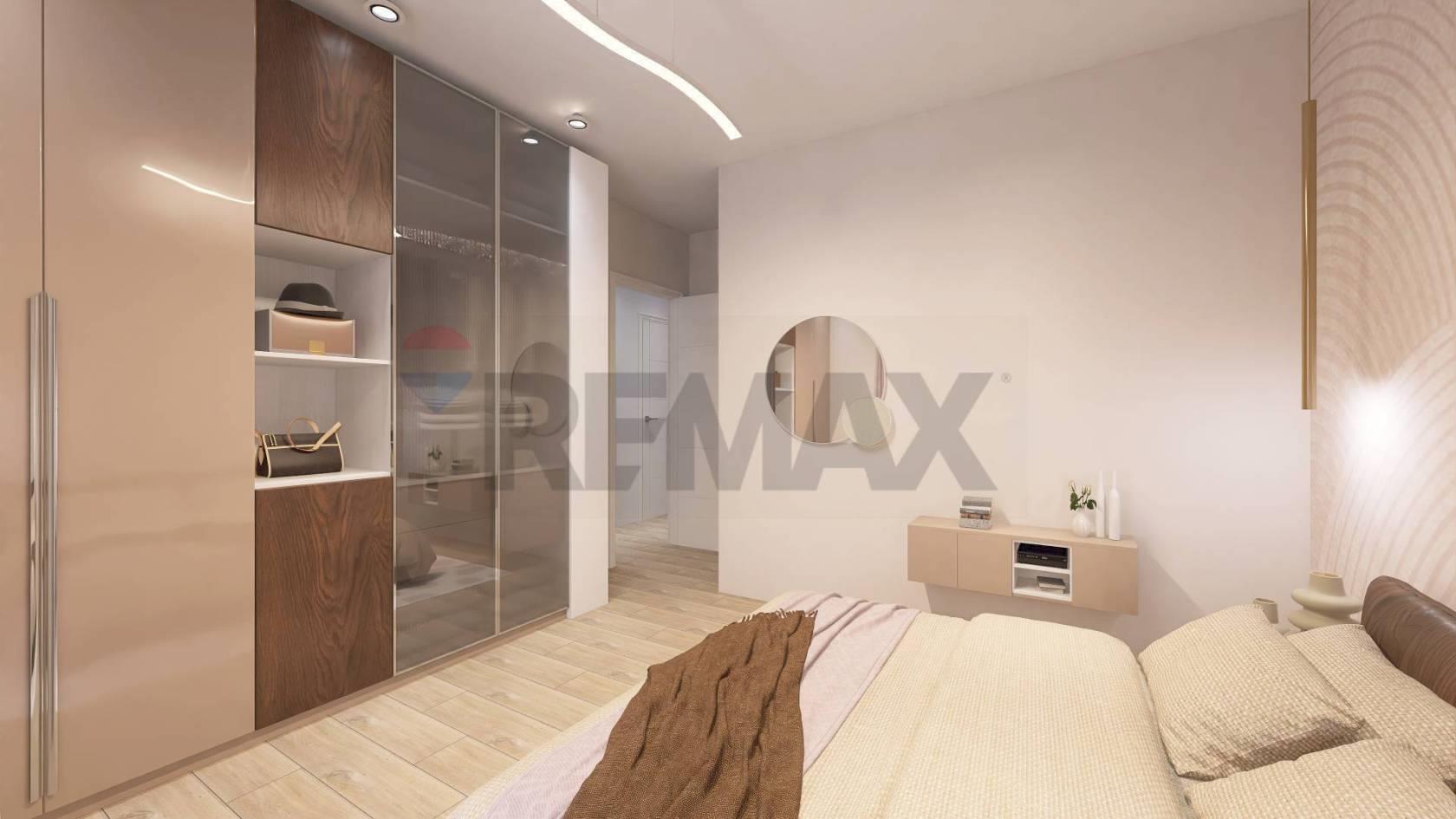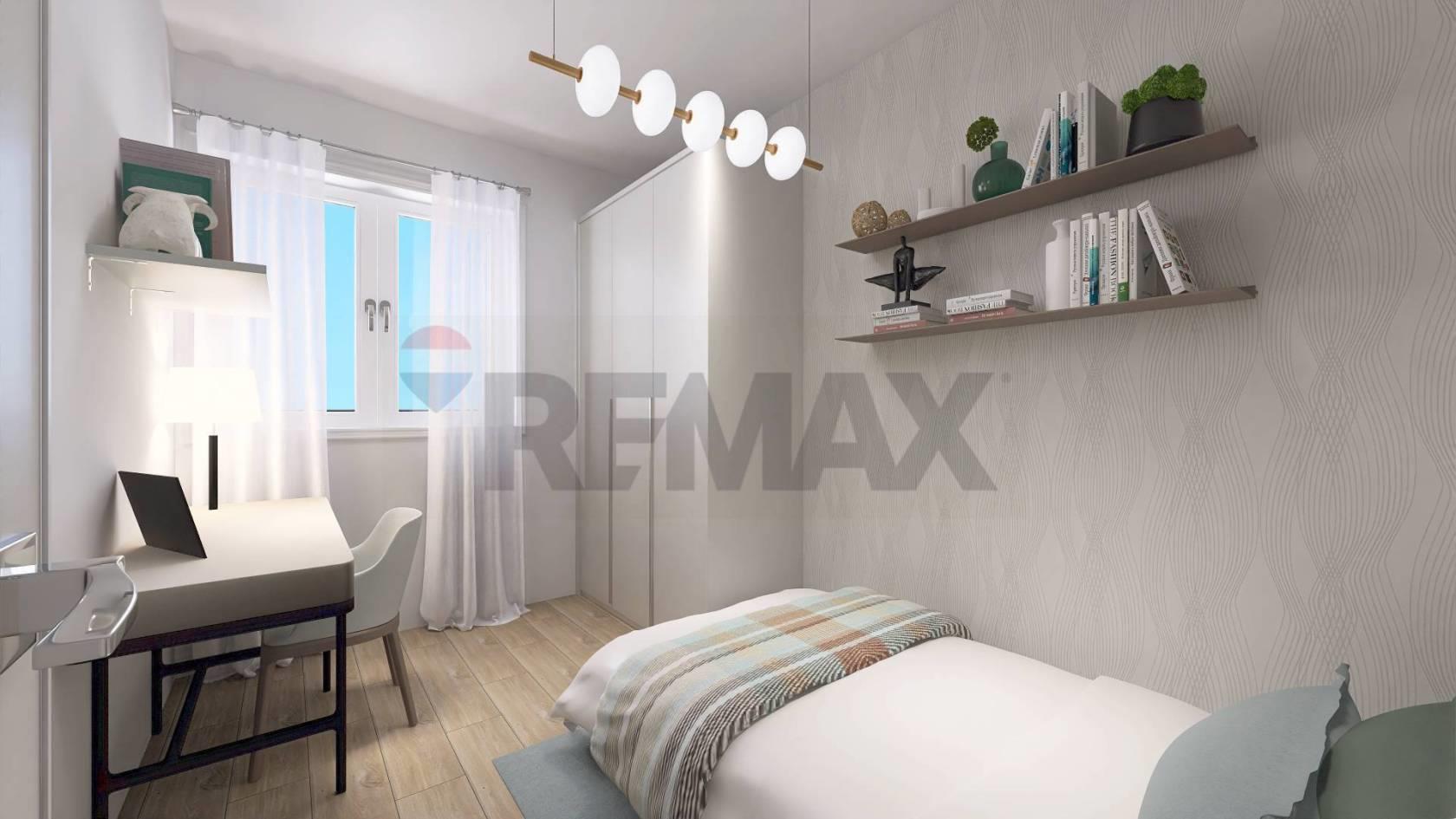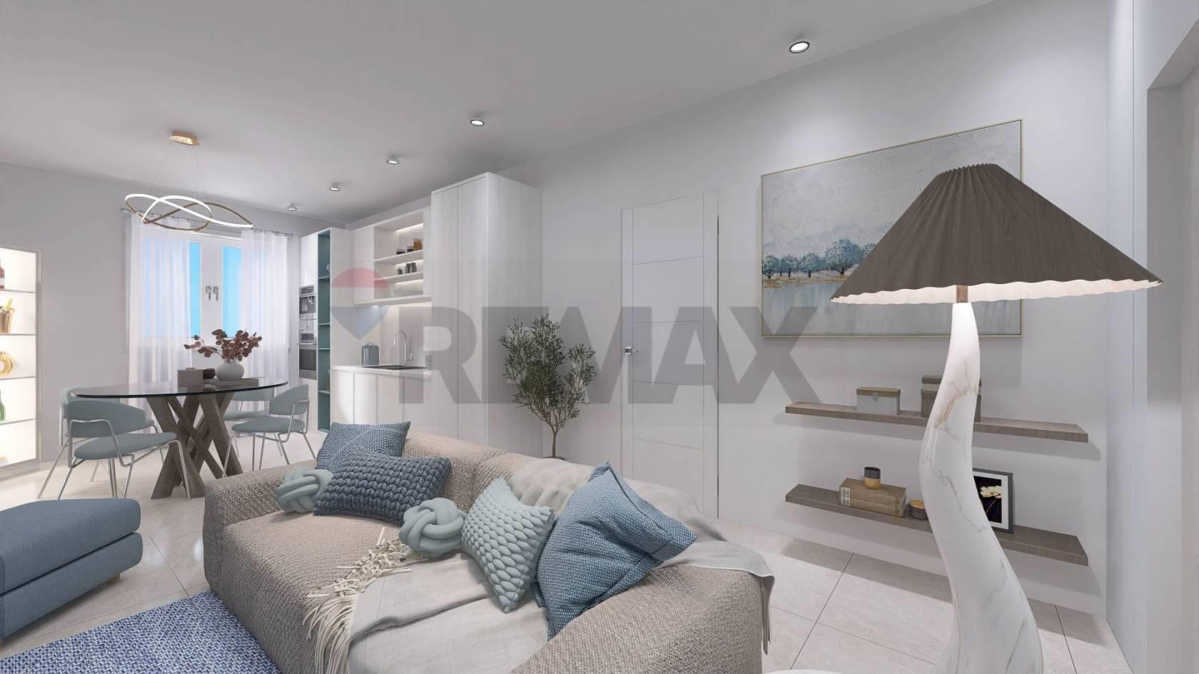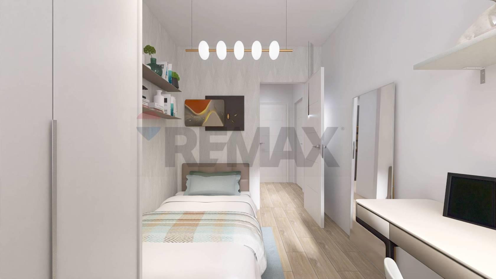 Appartamento n. 5, ATTICO DI 3 LOCALI AL PIANO SECONDO CON TERRAZZO (mq. 80) composto da: un'ampia zona living/soggiorno con angolo cottura caratterizzata da grandi vetrate che si affacciano su un meraviglioso e vivibile terrazzo coperto (mq. 24), un disimpegno con ripostiglio conduce alla zona notte dove si trovano una camera matrimoniale, cameretta, oltre ad un bagno di servizio cieco e bagno completo finestrato. Dalla zona notte si accede tramite le camere ad un ampia balconata (9 mq.)