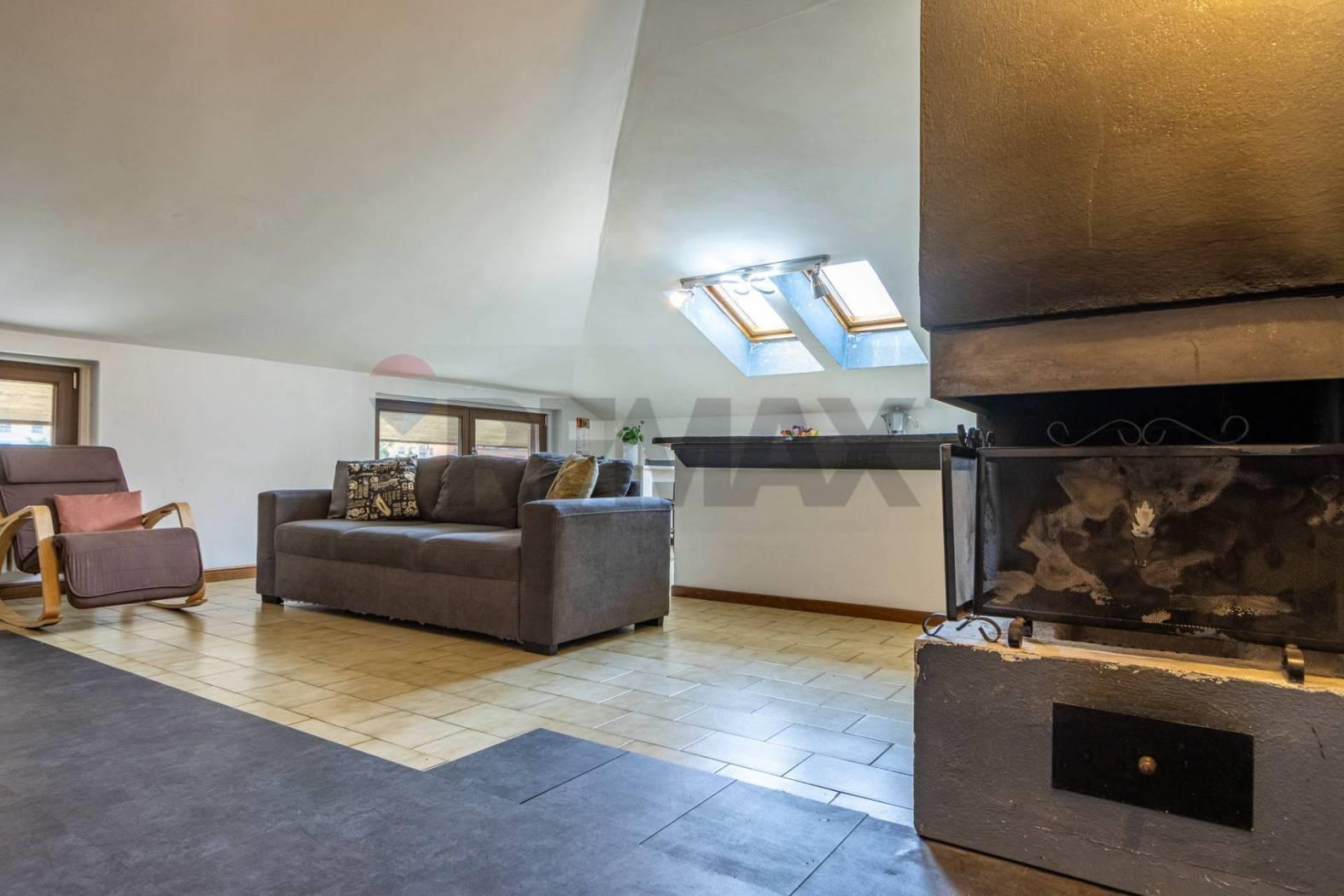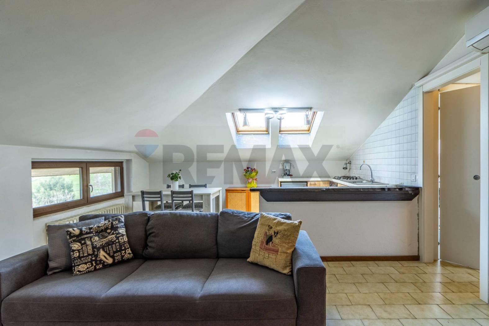 L'immobile si apre su una spaziosa zona giorno, composta da soggiorno con camino e area living con cucina a vista. Un comodo disimpegno, dotato di armadiatura a muro ad uso ripostiglio, conduce al bagno finestrato con zona lavanderia e alla camera matrimoniale, che dispone di un ulteriore locale separato ideale come studio o spazio smart working.